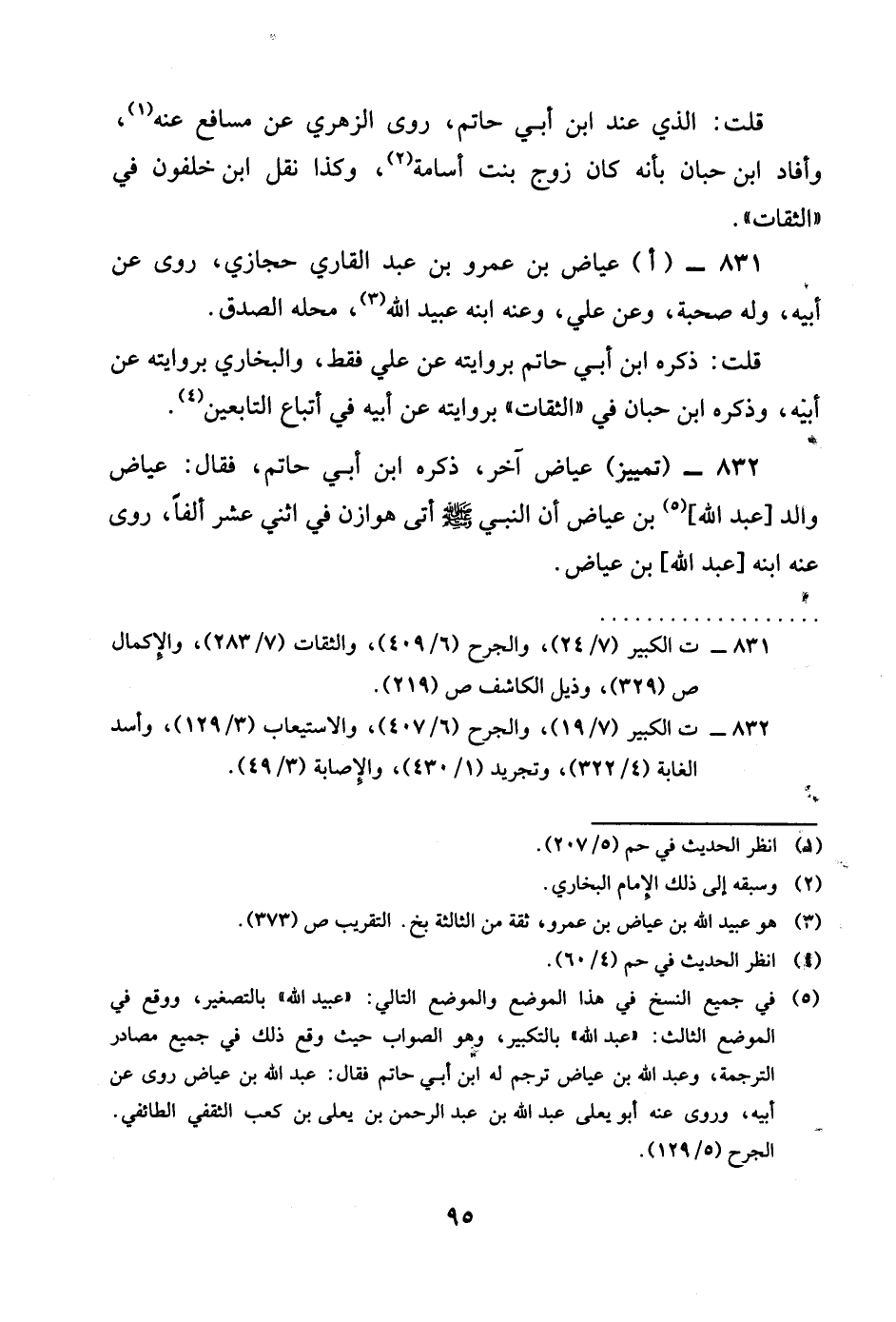 833 - تَمْيِيز عِيَاض آخر ذكره بن أبي حَاتِم فَقَالَ عِيَاض وَالِد عبد الله بن عِيَاض أَن النَّبِي صلى الله عَلَيْهِ وَسلم أَتَى هوَازن فِي اثْنَي عشر ألفا روى عَنهُ ابْنه عبد الله بن عِيَاض