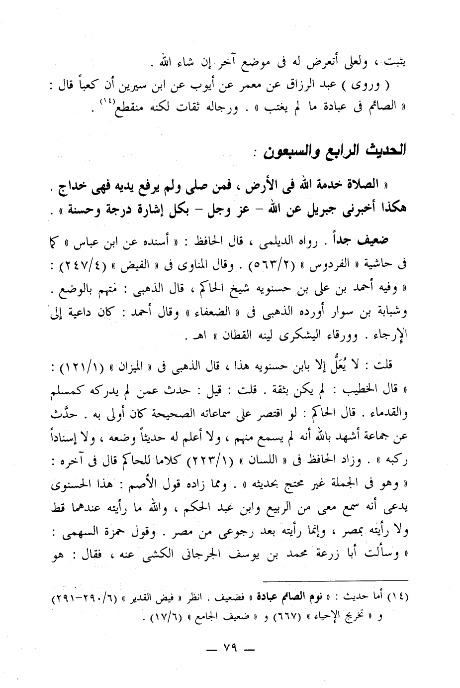 (¬14) أما حديث: "نوم الصائم عبادة" فضعيف. انظر "فيض القدير" (6/ 290 - 291) و "تخريج الإِحياء" (667) و "ضعيف الجامع" (6/ 17).