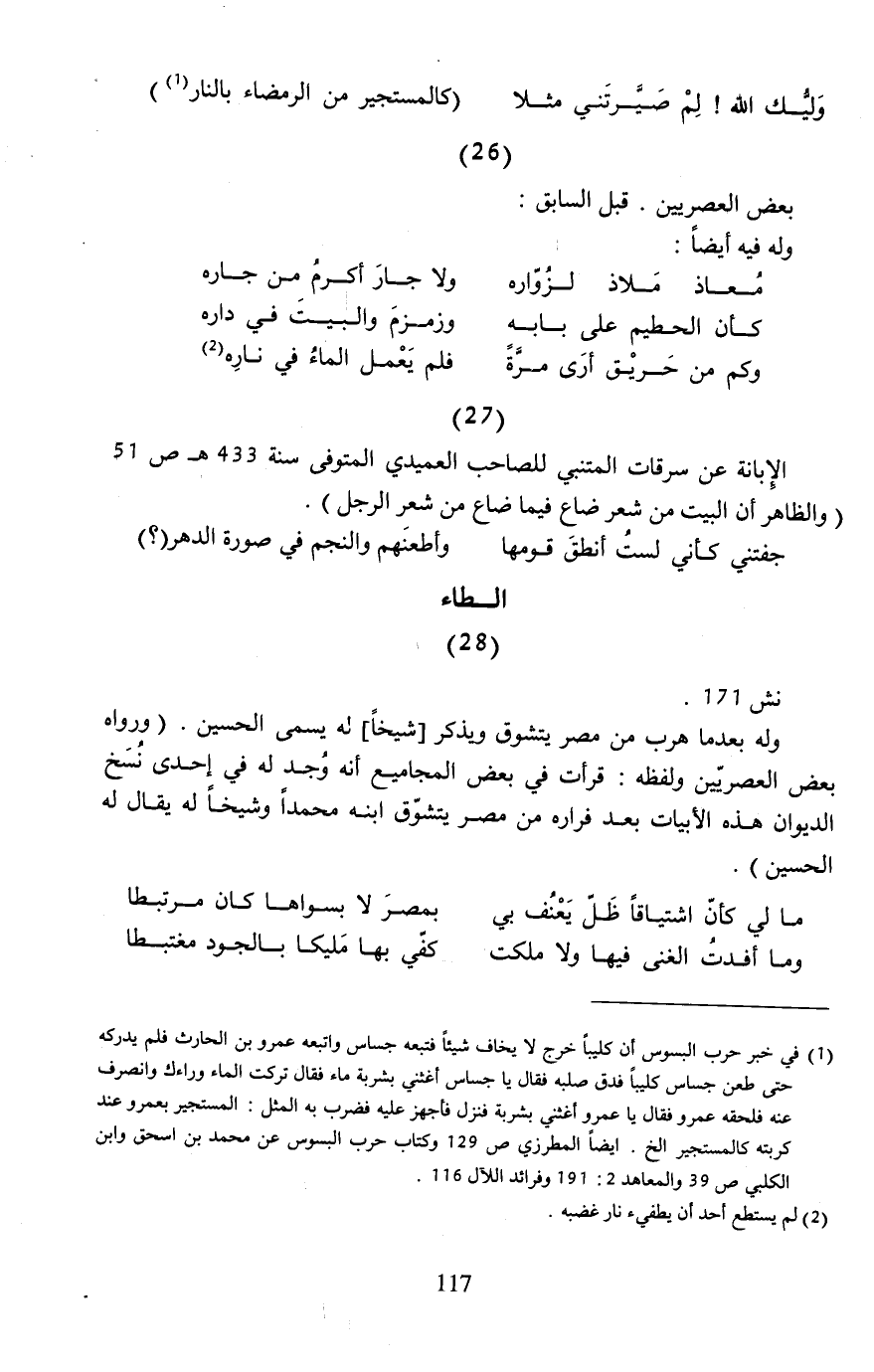 الإِبانة عن سرقات المتنبي للصاحب العميدي المتوفي سنة 433 هـ ص 51 (والظاهر أن البيت من شعر ضاع فيما ضاع من شعر الرجل).