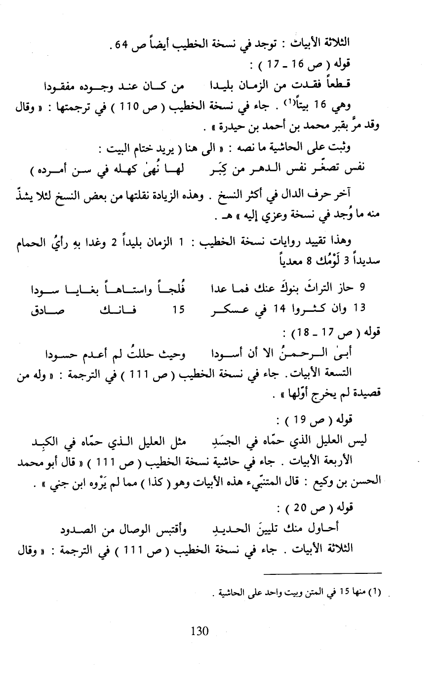 وهذا تقييد روايات نسخة الخطيب: 1 الزمان بليدًا 2 وغدا بهِ رأيُ الحمام سديدًا 3 لَوْمُك 8 معديًا