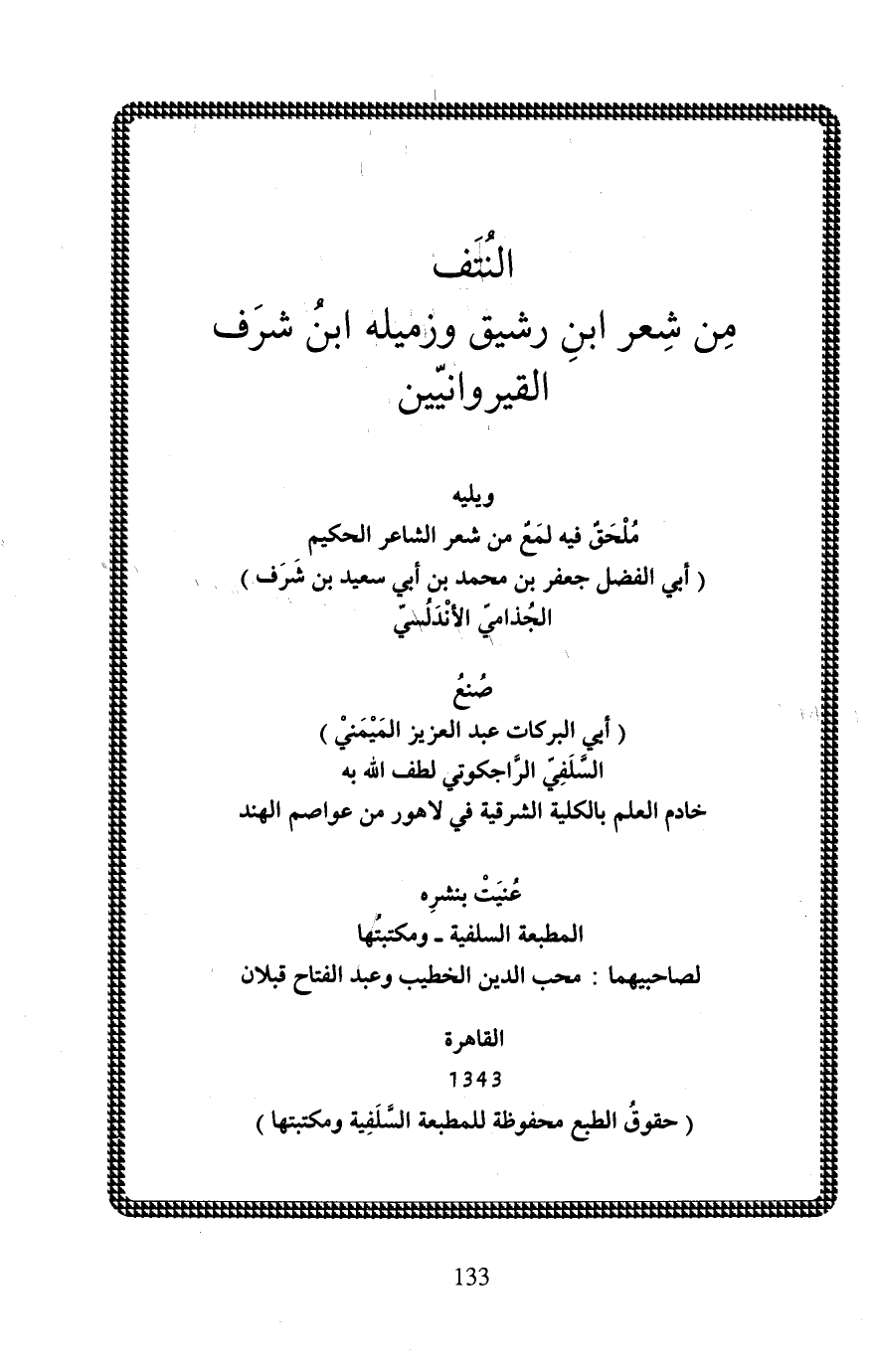 النُتَف مِن شِعر ابنِ رشيق وزميله ابنُ شرَف القيروانيّين