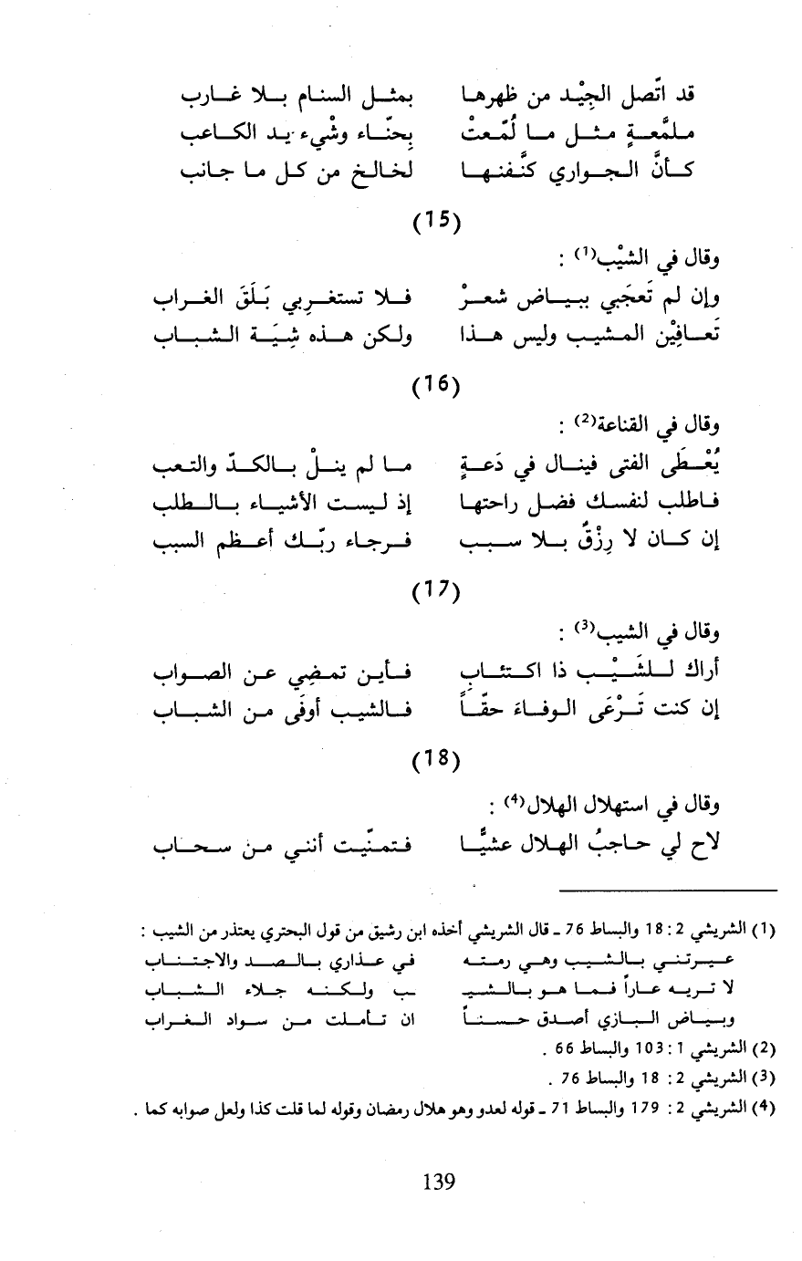 (¬1) الشريشي 2: 18 والبساط 76 - قال الشريشي أخذه ابن رشيق من قول البحتري يعتذر من الشيب: