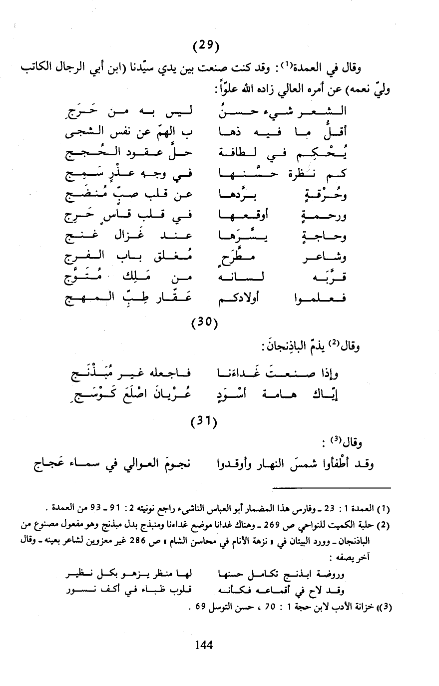(¬1) العمدة 1: 23 - وفارس هذا المضمار أبو العباس الناشئ راجع نونيته 2: 91 - 93 من العمدة.