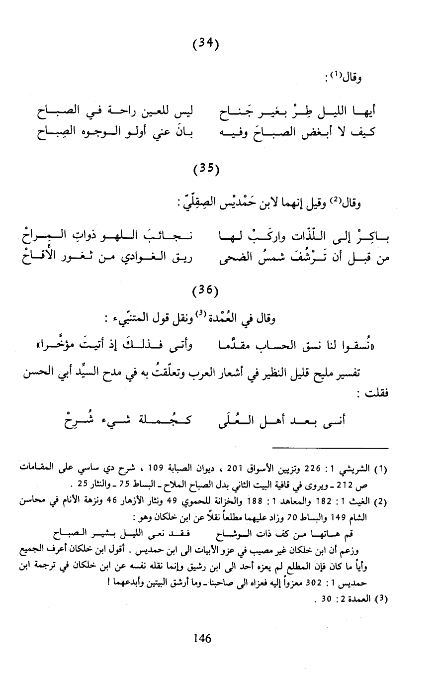 (¬1) الشريشي 1: 226 وتزيين الأسواق 201، ديوان الصبابة 109، شرح دي ساسي على المقامات ص 212 - ويروى في قافية البيت الثاني بدل الصباح الملاح - البساط 75 - والنثار 25.