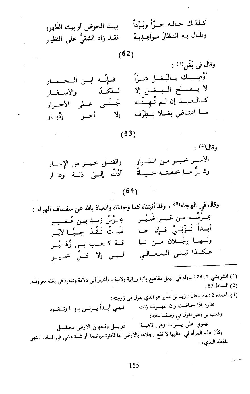 (¬3) العمدة 2: 72 - قال: زيد بن عمير هو الذي يقول في زوجته:
