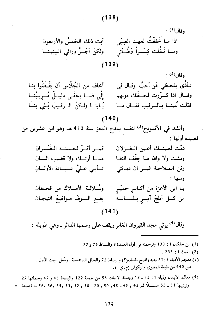 (¬3) معجم الأدباء 3: 71 وفيه واضح بلسانه (؟) والبساط 72 والحلل السندسية- وتأمل البيت الأول. ص 440 من طبعة المطوي والبكوش (م. ي.).