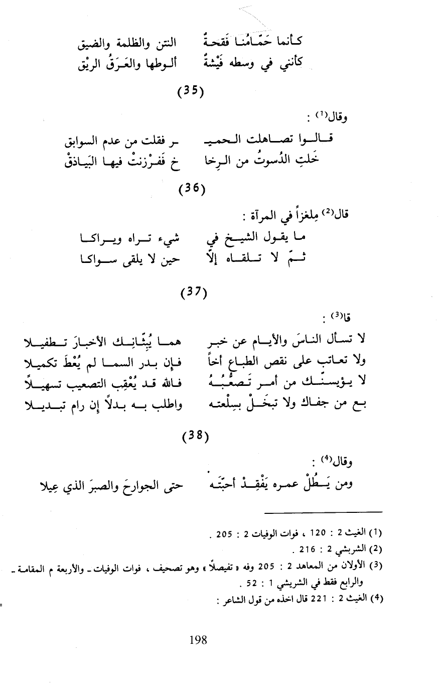 (¬3) الأولان من المعاهد 2: 205 وفه "تفيصلًا" وهو تصحيف، فوات الوفيات -والأربعة م المقامة- والرابع فقط في الشريشي 1: 52.