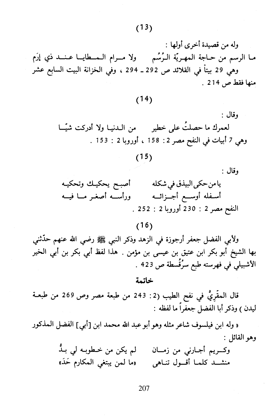 قال المقرِيُّ في نفح الطيب (2: 243 من طبعة مصر وص 269 من طبعة ليدن) وذكر أبا الفضل جعفرًا ما لفظه: