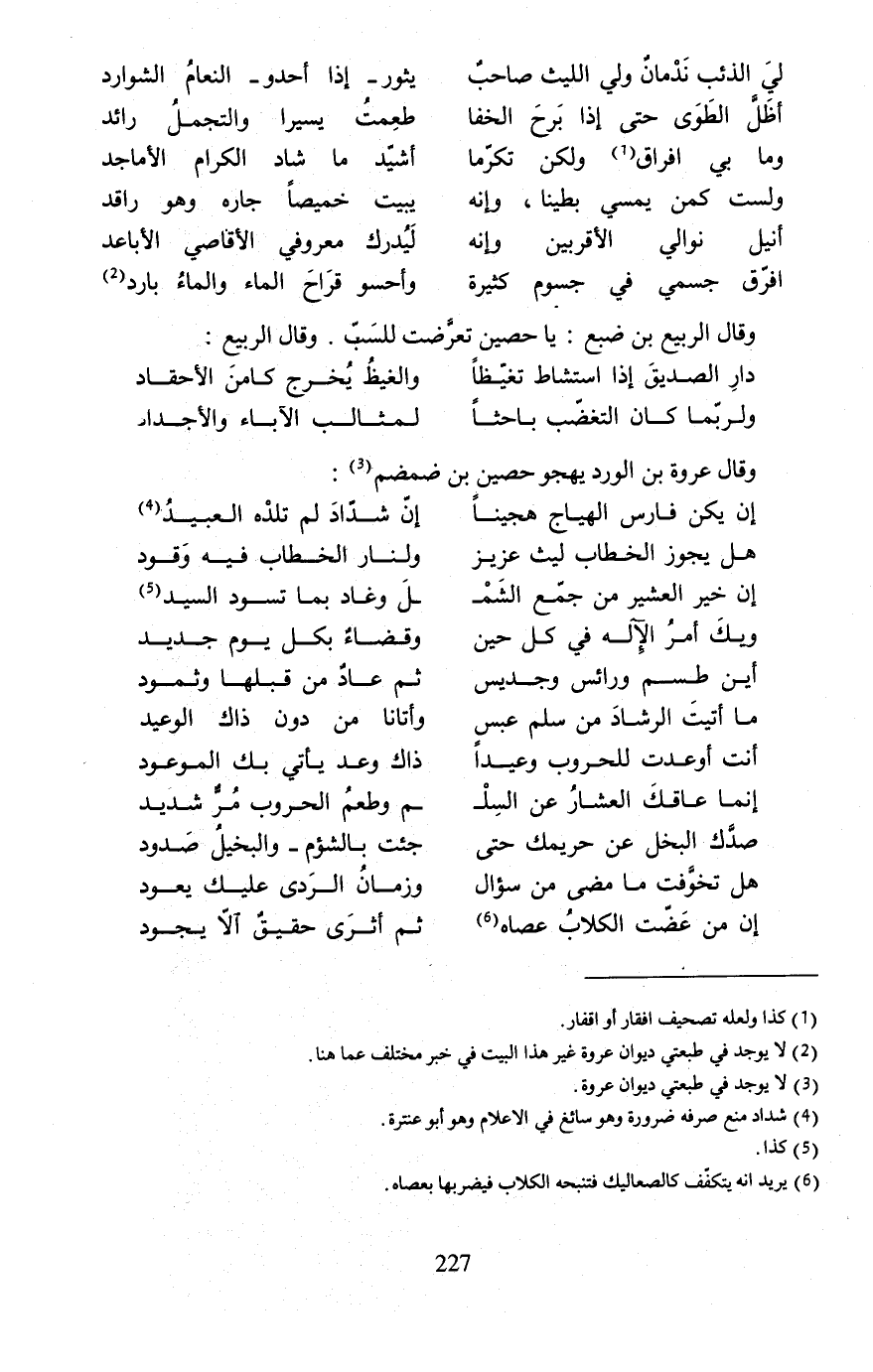 (¬3) لا يوجد في طبعتي ديوان عروة.