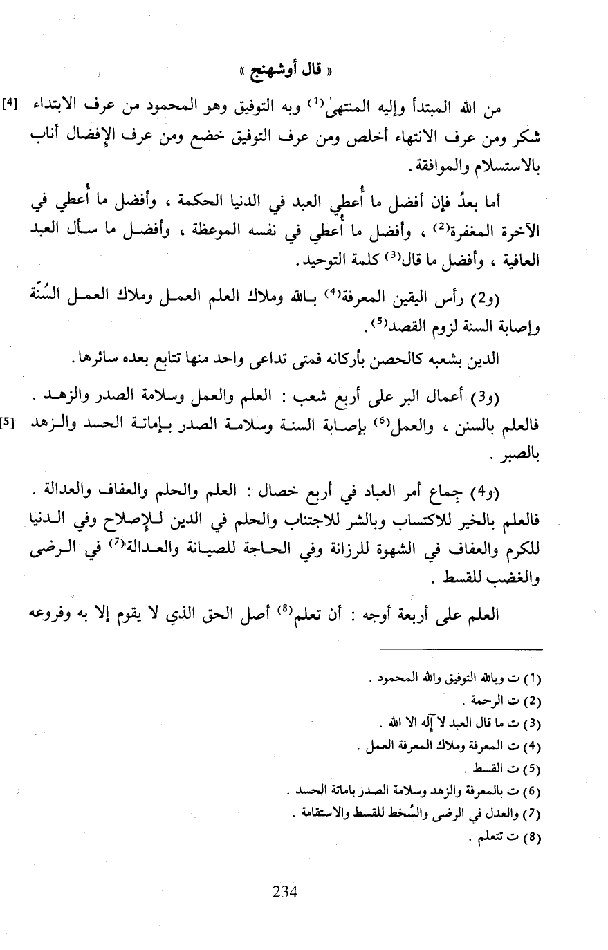 من الله المبتدأ وإليه المنتهى (¬1) وبه التوفيق وهو المحمود من عرف الابتداء شكر ومن عرف الانتهاء أخلص ومن عرف التوفيق خضع ومن عرف الإِفضال أناب بالاستسلام والموافقة.