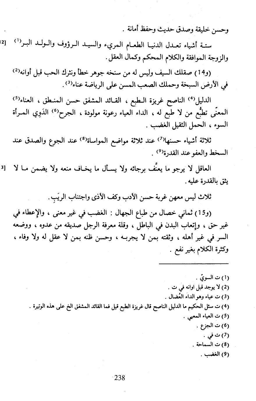 (¬4) ت سئل الحكيم ما الدليل الناصح قال غريزة الطبع قيل فما القائد المشفق الخ على هذه الوتيرة.