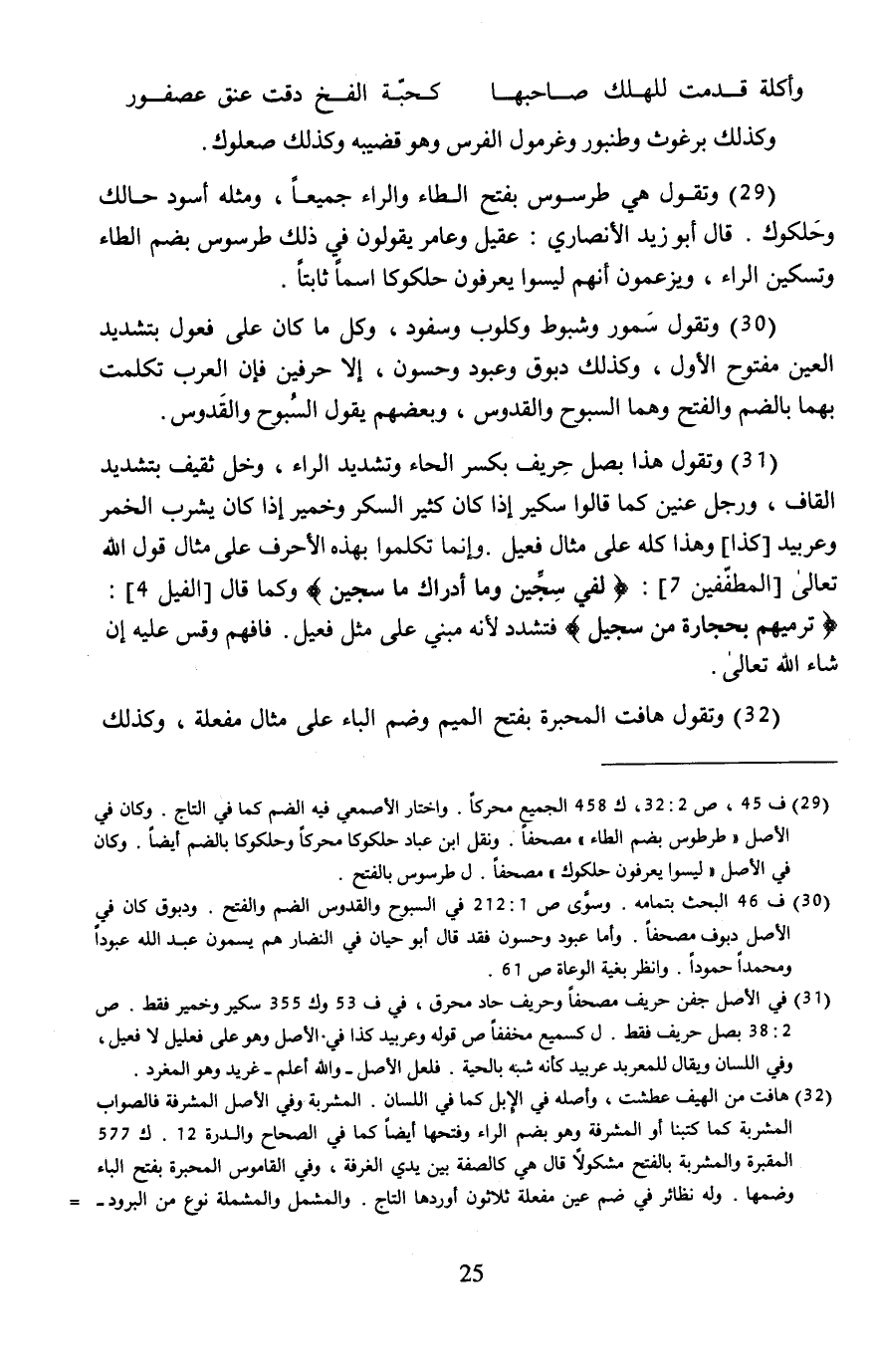 (29) ف 45، ص 2: 32، ك 458 الجميع محركًا. واختار الأصمعي فيه الضم كما في التاج. وكان في الأصل "طرطوس بضم الطاء" مصحفًا. ونقل ابن عباد حلكوكا محركًا وحلكوكا بالضم أيضًا. وكان في الأصل "ليسوا يعرفون حلكوكا" مصحفًا. ل طرسوس بالفتح.