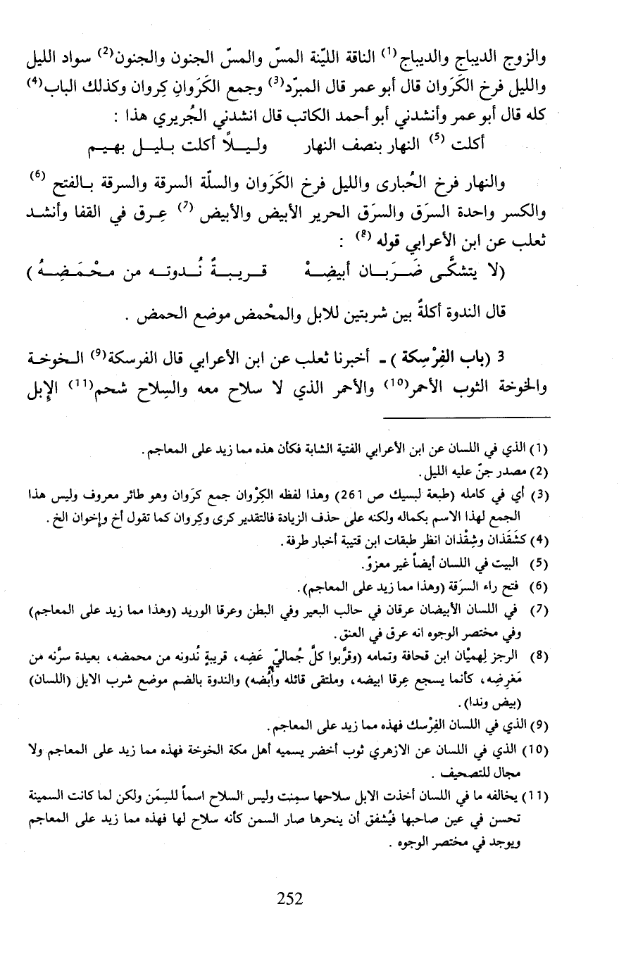 3 (باب الفِرْسِكة) -أخبرنا ثعلب عن ابن الأعرابي قال الفرسكة (¬9) الخوخة والخوخة الثوب الأحمر (¬10) والأحمر الذي لا سلاح معه والسِلاح شحم (¬11) الإِبل