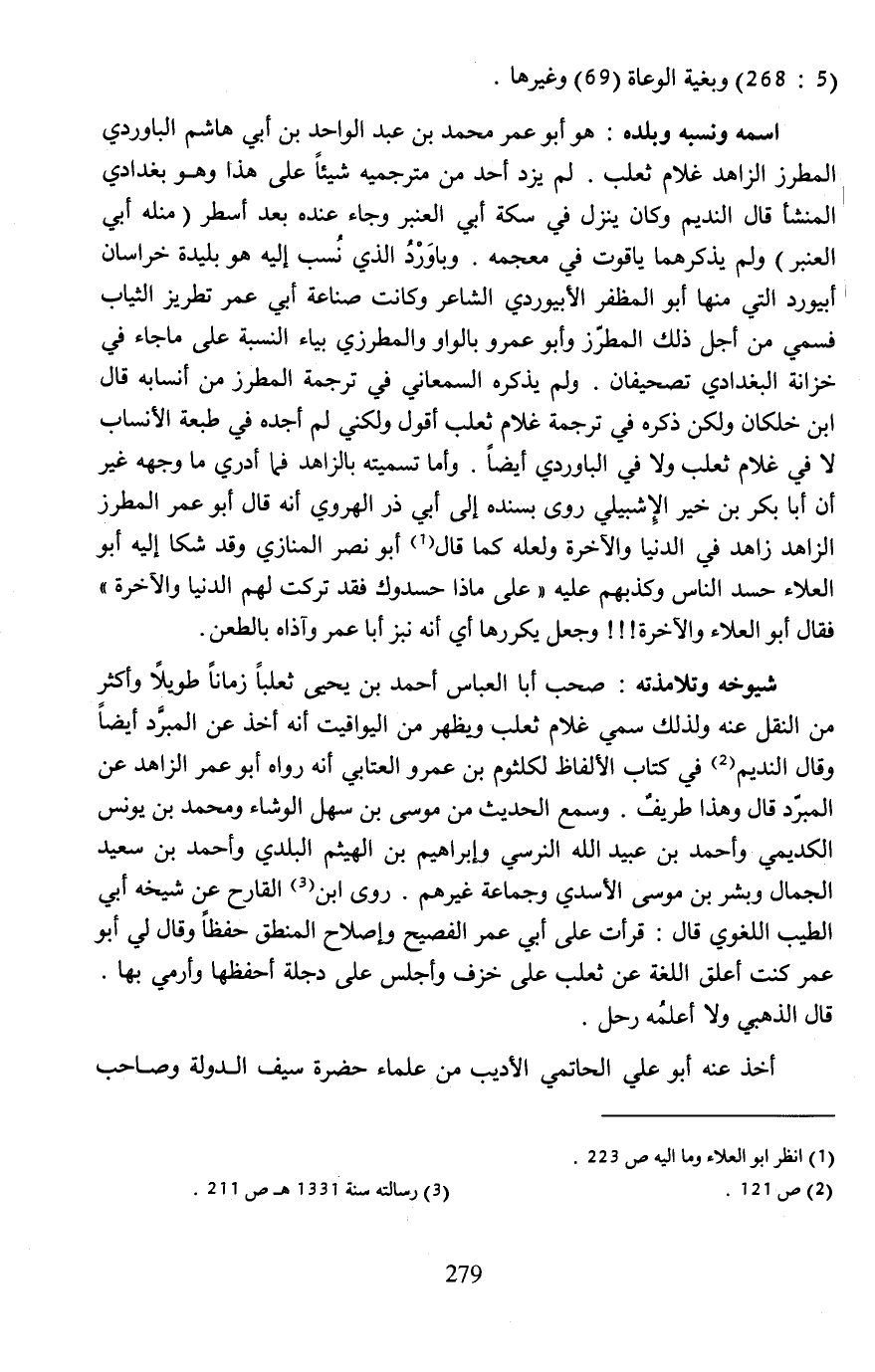 (5: 268) وبغية الوعاة (69) وغيرها.