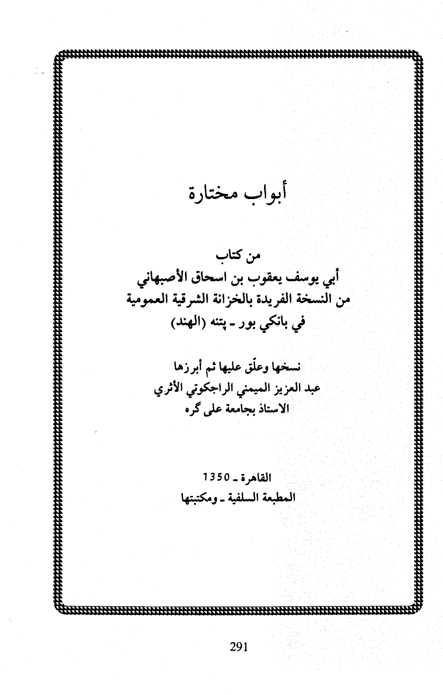 أبواب مختارة من كتاب أبي يوسف يعقوب بن إسحاق الأصبهاني