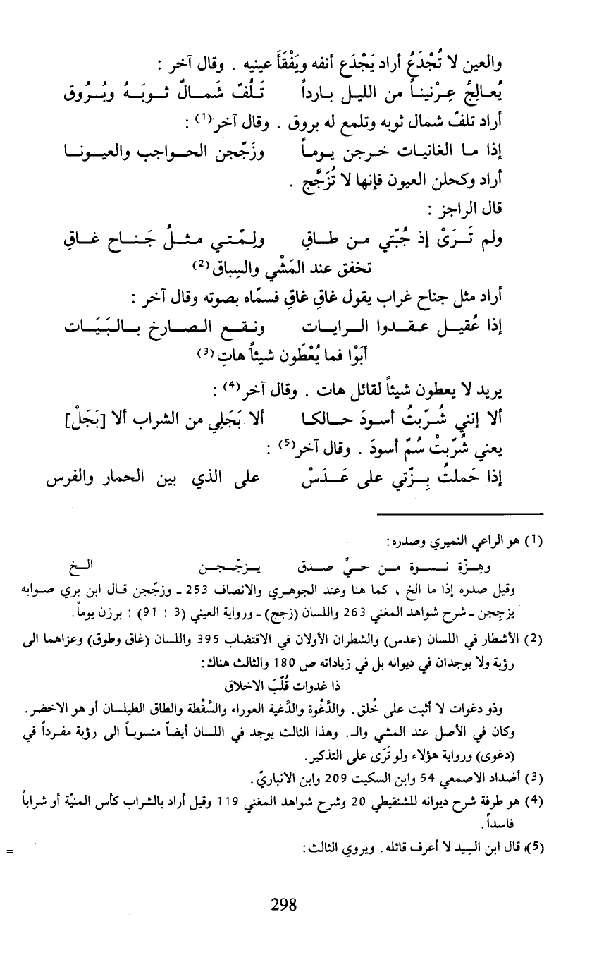 (¬2) الأشطار في اللسان (عدس) والشطران الأولان في الاقتضاب 395 واللسان (غاق وطوق) وعزاهما إلى رؤبة ولا يوجدان في ديوانه بل في زياداته ص 180 والثالث هناك: