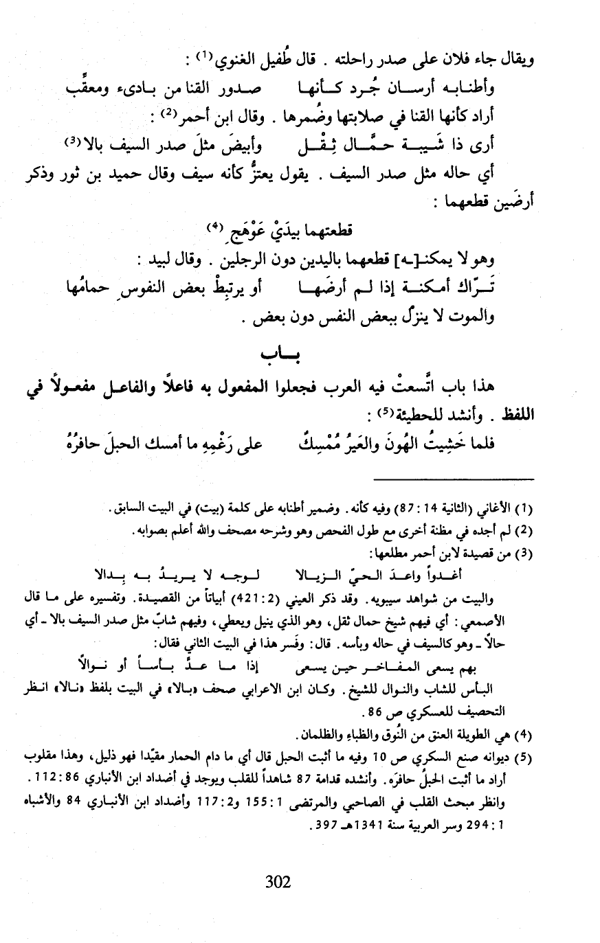 (¬5) ديوانه صنع السكري ص 10 وفيه ما أثبت الحبل قال أي ما دام الحمار مقيدا فهو ذليل، وهذا مقلوب أراد ما أثبت الحبل حافرَه. وأنشده قدامة 87 شاهدًا للقلب ويوجد في أضداد ابن الأنباري 86: 112. وانظر مبحث القلب في الصاحبي والمرتضى 1: 155 و 2: 117 وأضداد ابن الأنباري 84 والأشباه 1: 294 وسر العربية سنة 1341 هـ 397.