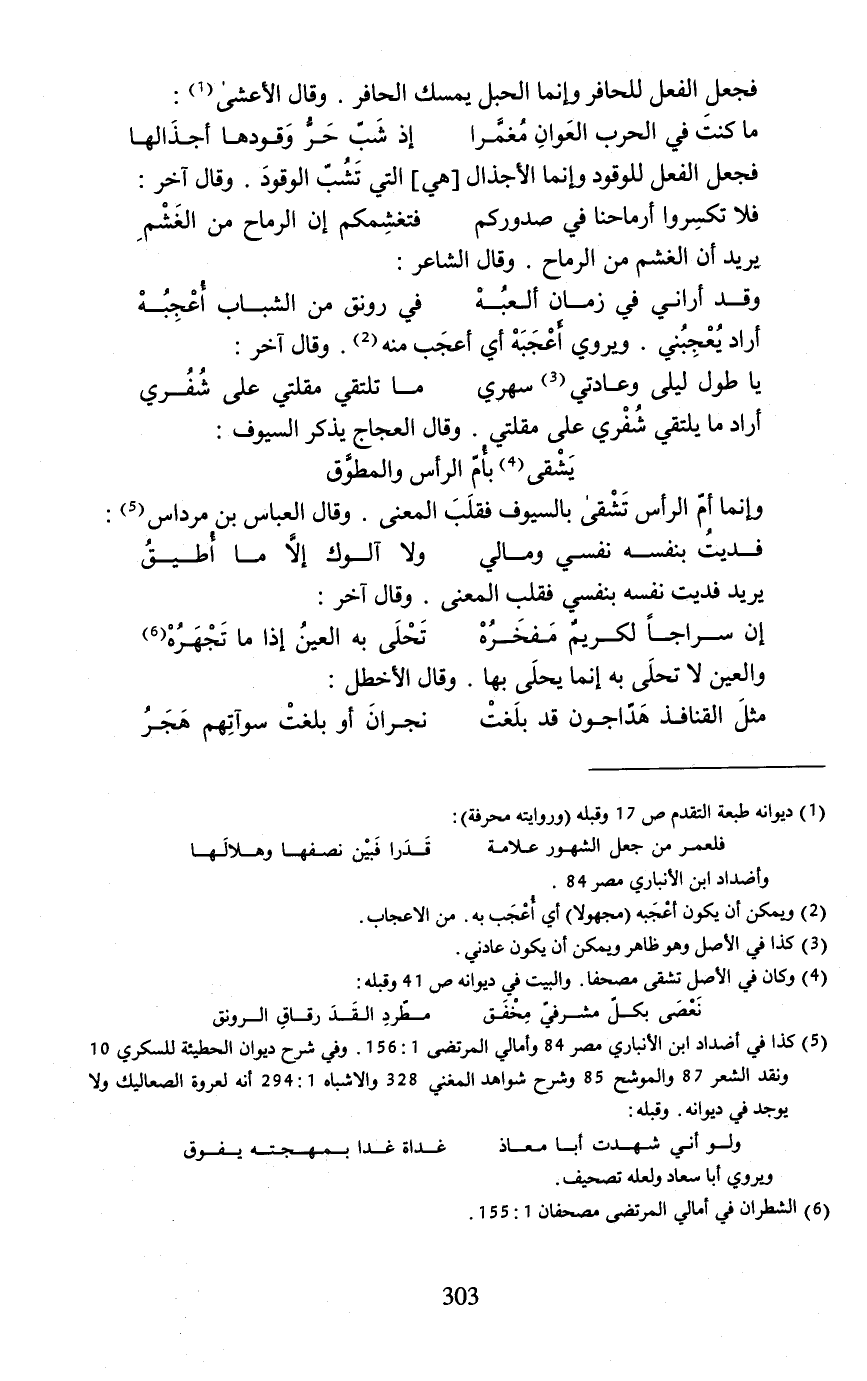 (¬5) كذا في أضداد ابن الأنباري مصر 84 وأمالي المرتضى 1: 156. وفي شرح ديوان الحطيئة للسكري 10 ونقد الشعر 87 والموشح 85 وشرح شواهد المغني 328 والأشباه 1: 294 أنه لعروة الصعاليك ولا يوجد في ديوانه. وقبله: