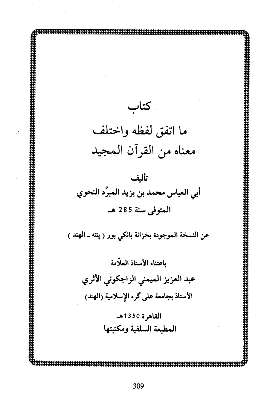 كتاب ما اتفق لفظه واختلف معناه من القرآن المجيد