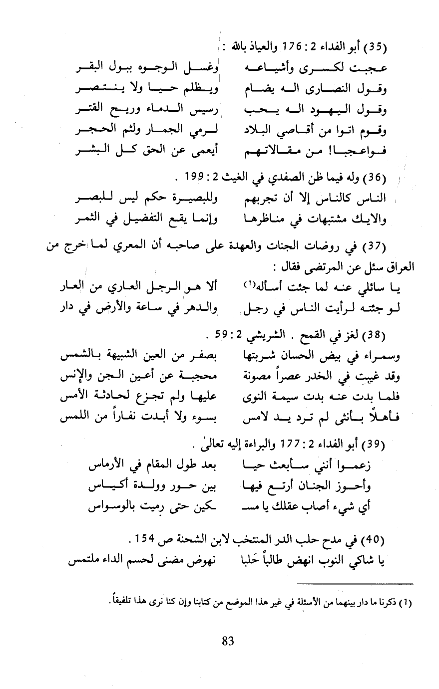 (37) في روضات الجنات والعهدة على صاحبه أن المعري لما خرج من العراق سئل عن المرتضى فقال: