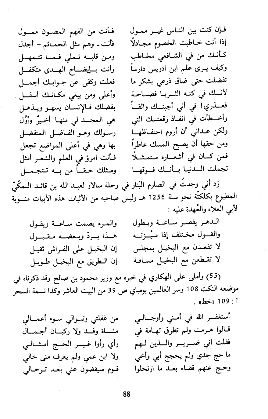 (55) وأملى على الهكاري في خبره مع وزير محمود بن صالح وقد ذكرناه في موضعه النكت 108 وسر العالمين بومباي ص 39 من البيت العاشر وكذا نسمة السحر 1: 109"خط".