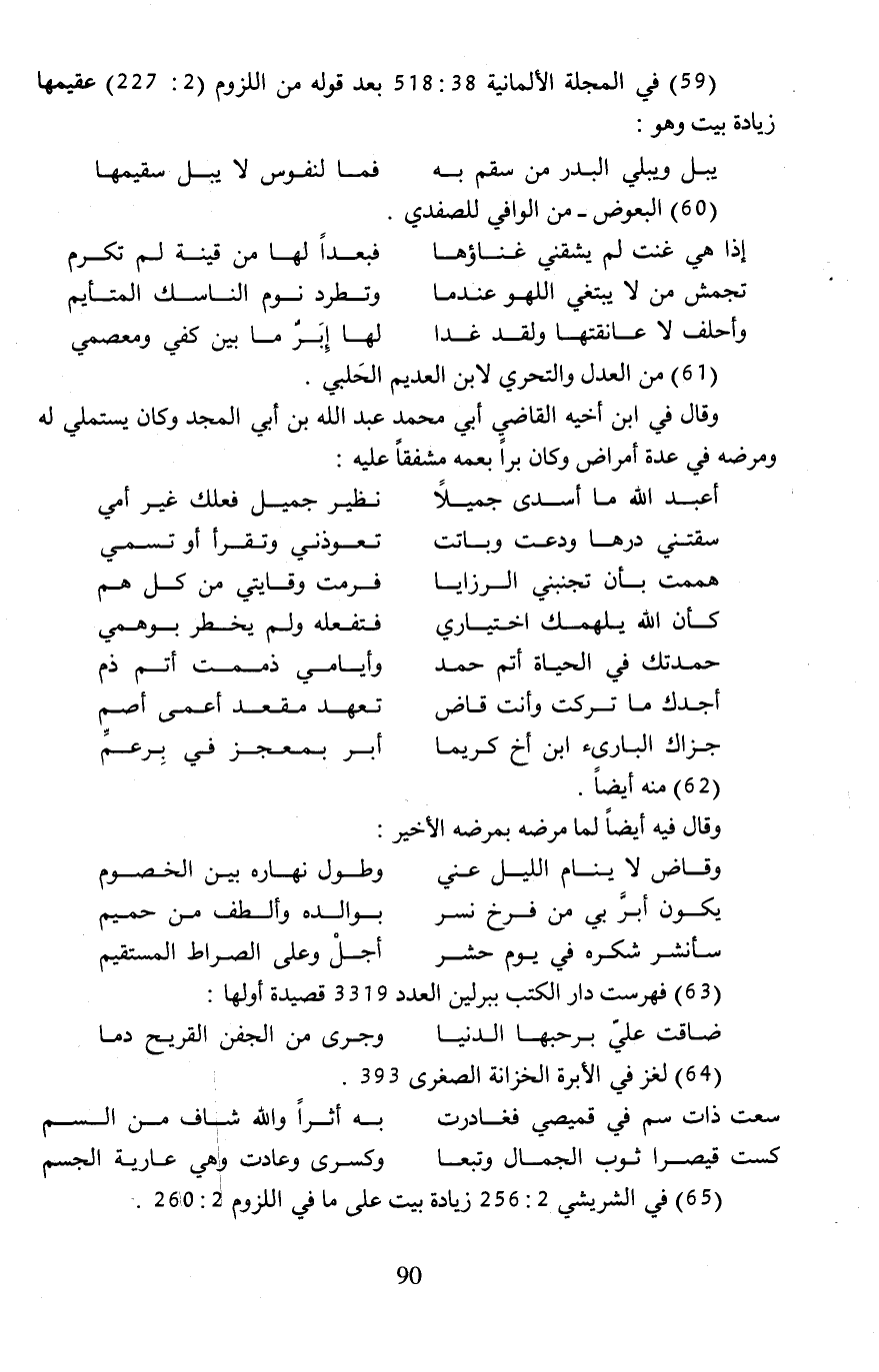 (59) في المجلة الألمانية 38: 518 بعد قوله من اللزوم (2: 722) عقيمها زيادة بيت وهو: