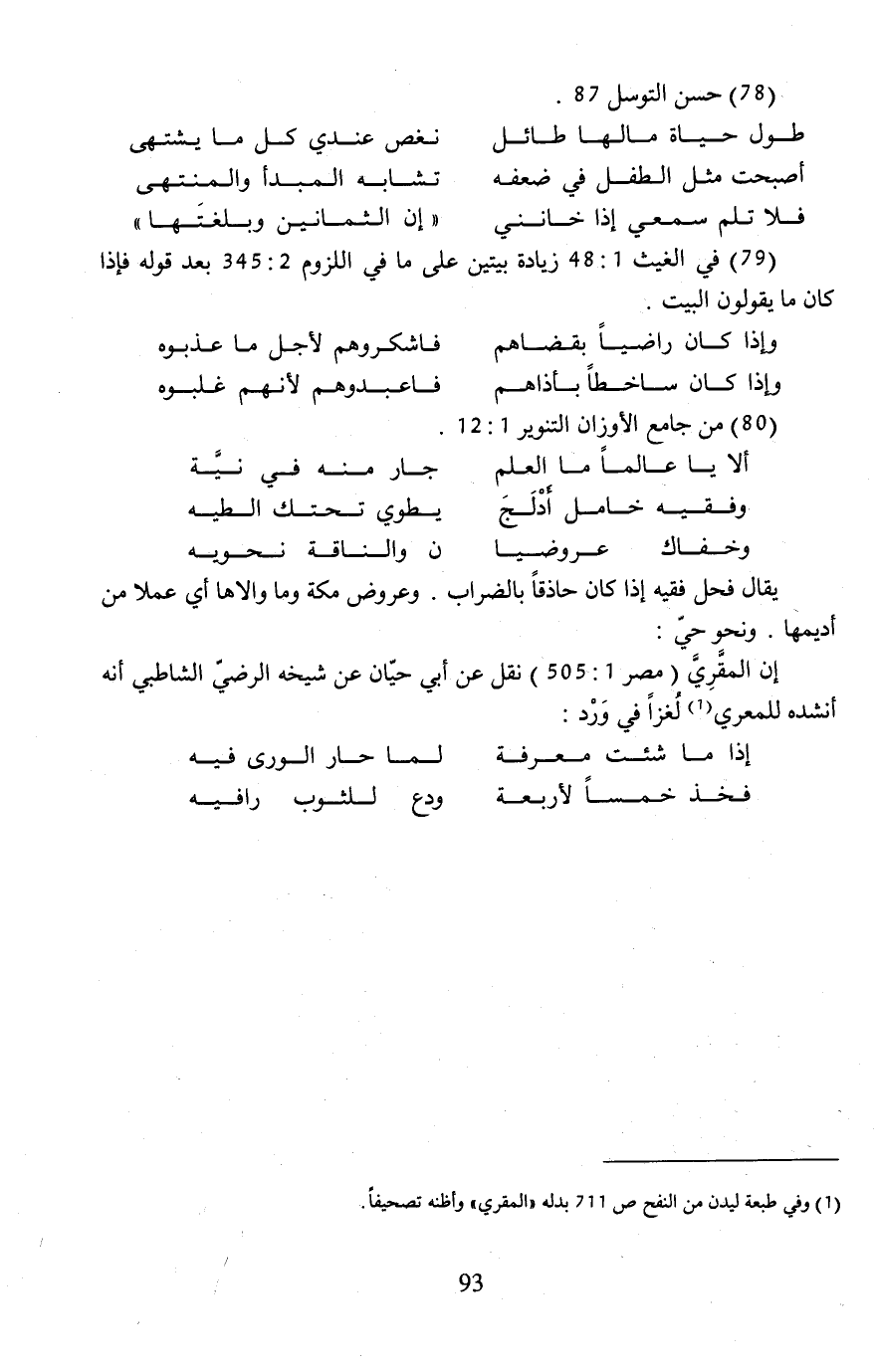 (79) في الغيث 1: 48 زيادة بيتين على ما في اللزوم 2: 345 بعد قوله فإذا كان ما يقولون البيت.