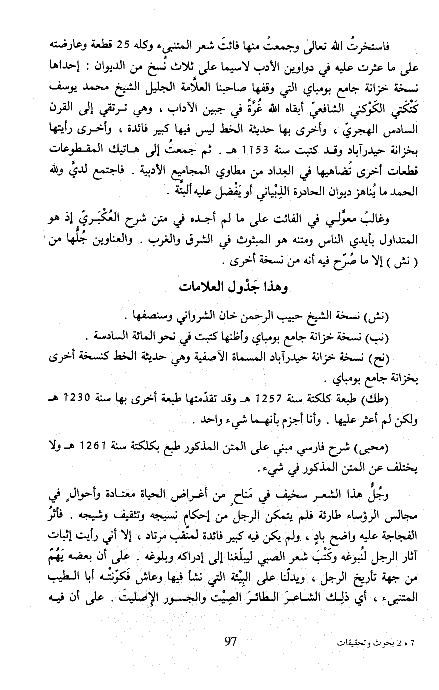 (طك) طبعة كلكتة سنة 1257 هـ وقد تقدّمتها طبعة أخرى بها سنة 1230 هـ ولكن لم أعثر عليها. وأنا أجزم بأنهما شيء واحد.
