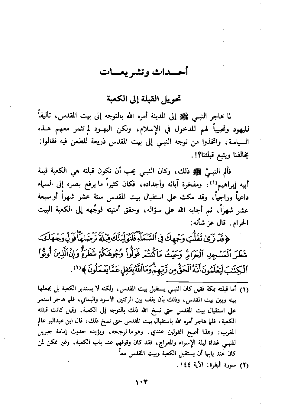 قَدْ نَرى تَقَلُّبَ وَجْهِكَ فِي السَّماءِ فَلَنُوَلِّيَنَّكَ قِبْلَةً تَرْضاها فَوَلِّ وَجْهَكَ شَطْرَ الْمَسْجِدِ الْحَرامِ وَحَيْثُ ما كُنْتُمْ فَوَلُّوا وُجُوهَكُمْ شَطْرَهُ وَإِنَّ الَّذِينَ أُوتُوا الْكِتابَ لَيَعْلَمُونَ أَنَّهُ الْحَقُّ مِنْ رَبِّهِمْ وَمَا اللَّهُ بِغافِلٍ عَمَّا يَعْمَلُونَ «2» .