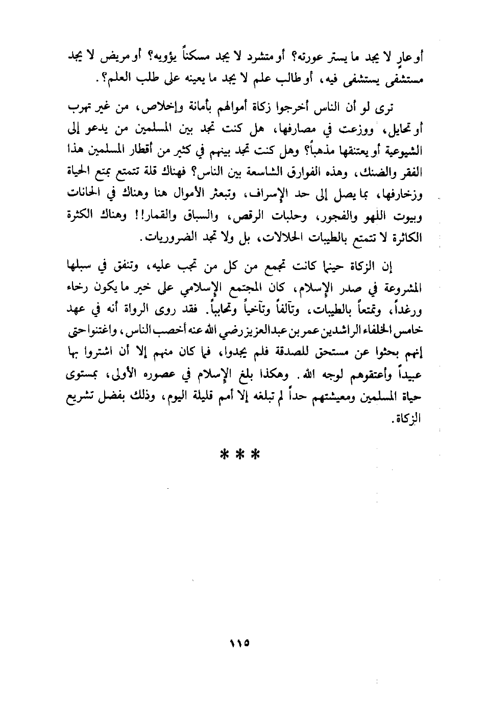أو عار لا يجد ما يستر عورته؟ أو متشرد لا يجد مسكنا يؤويه؟ أو مريض لا يجد مستشفى يستشفى فيه، أو طالب علم لا يجد ما يعينه على طلب العلم؟.