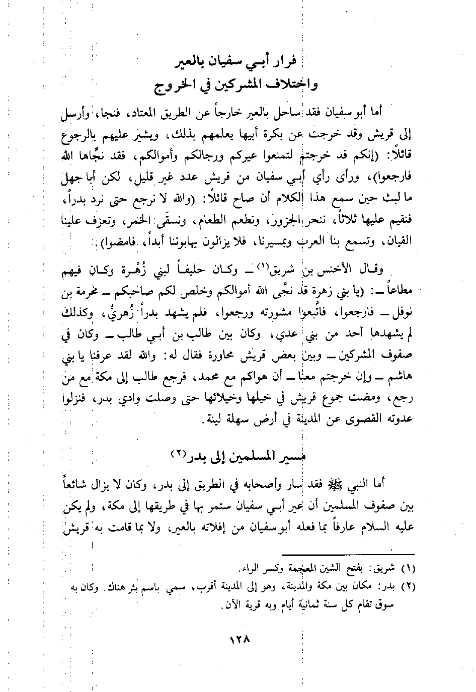(2) بدر: مكان بين مكة والمدينة، وهو إلى المدينة أقرب، سمي باسم بئر هناك. وكان به سوق تقام كل سنة ثمانية أيام وبه قرية الان.