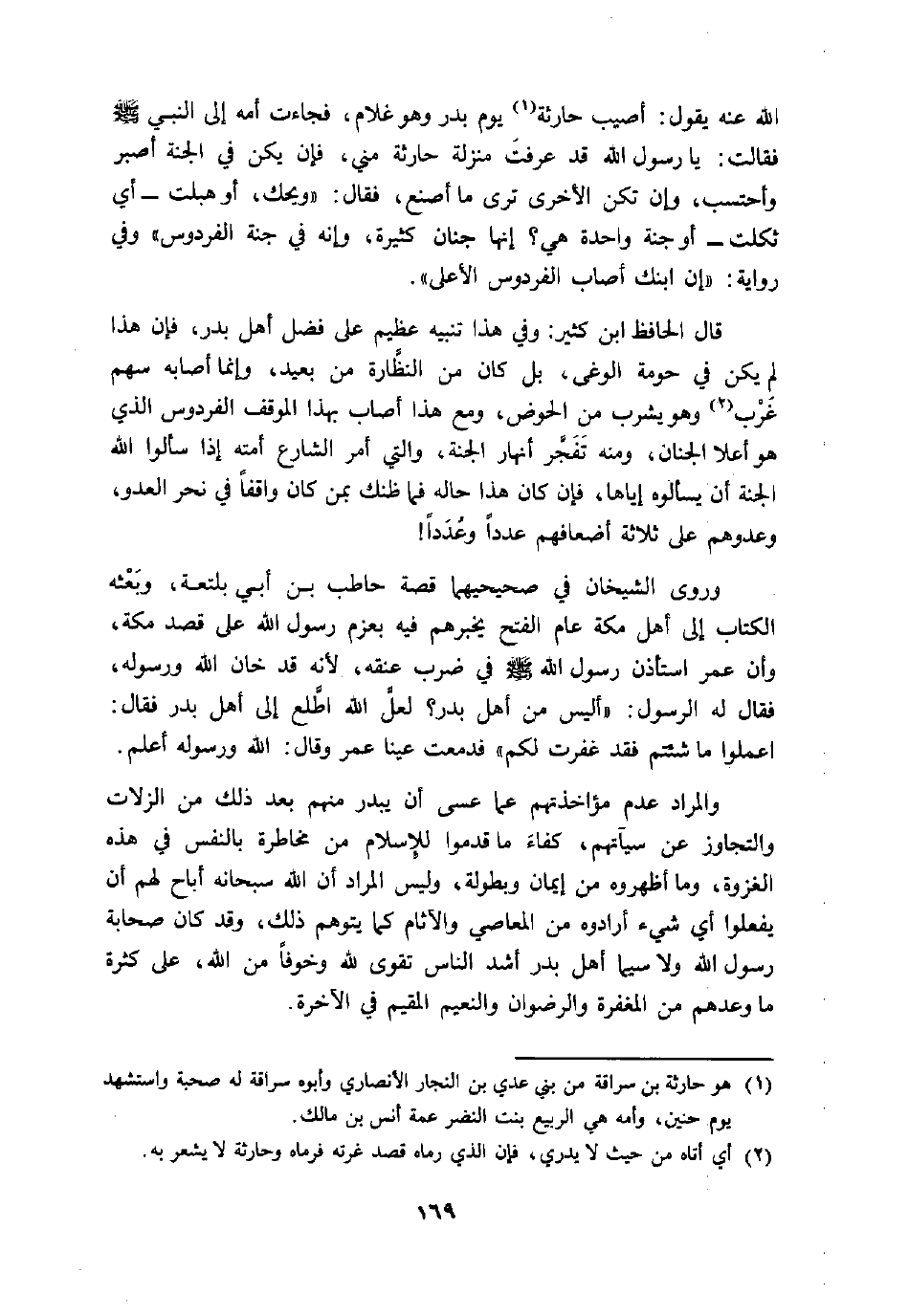 (1) هو حارثة بن سراقة من بني عدي بن النجار الأنصاري وأبوه سراقة له صحبة واستشهد يوم حنين، وأمه هي الربيع بنت النضر عمة أنس بن مالك.