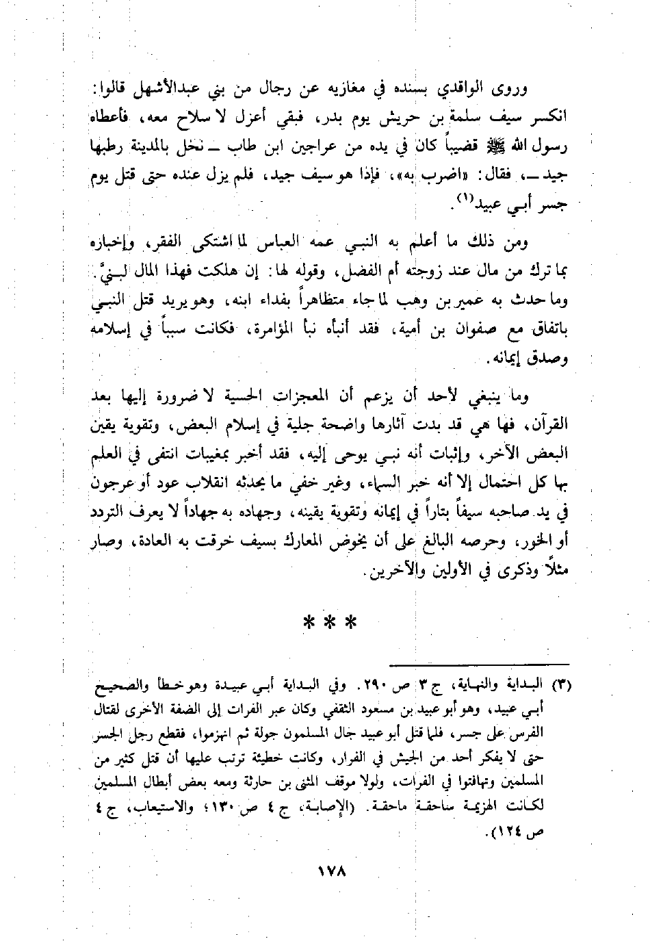 (1) البداية والنهاية، ج 3 ص 290. وفي البداية أبي عبيدة وهو خطأ والصحيح أبي عبيد، وهو أبو عبيد بن مسعود الثقفي وكان عبر الفرات إلى الضفة الاخرى لقتال الفرس على جسر، فلما قتل أبو عبيد جال المسلمون جولة ثم انهزموا، فقطع رجل الجسر حتى لا يفكر أحد من الجيش في الفرار، وكانت خطيئة ترتب عليها أن قتل كثير من المسلمين وتهافتوا في الفرات، ولولا موقف المثنى بن حارثة ومعه بعض أبطال المسلمين لكانت الهزيمة ساحقة ماحقة. (الإصابة، ج 4 ص 130؛ والاستيعاب، ج 4 ص 124) .