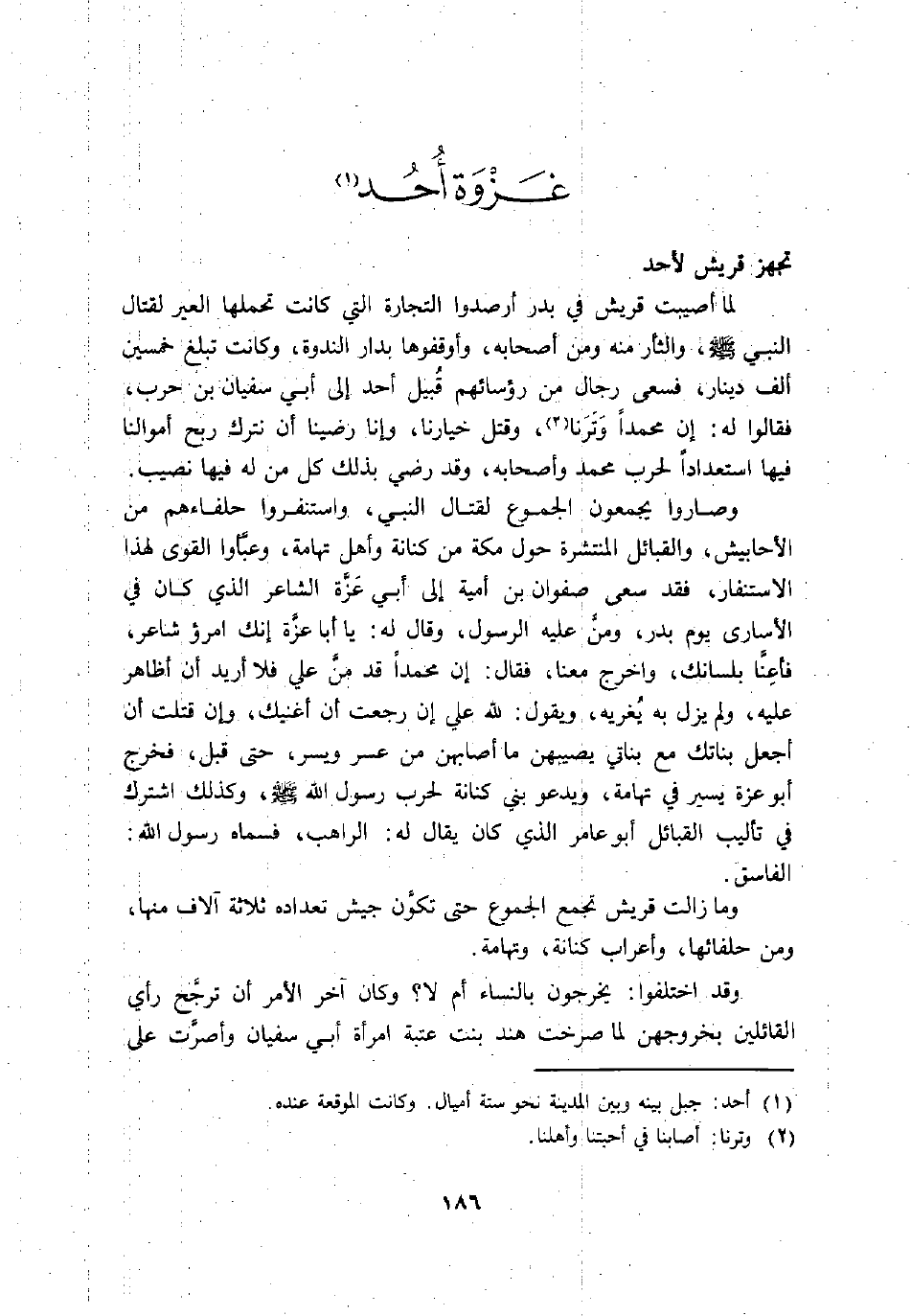 (1) أحد: جبل بينه وبين المدينة نحو ستة أميال. وكانت الموقعة عنده.
