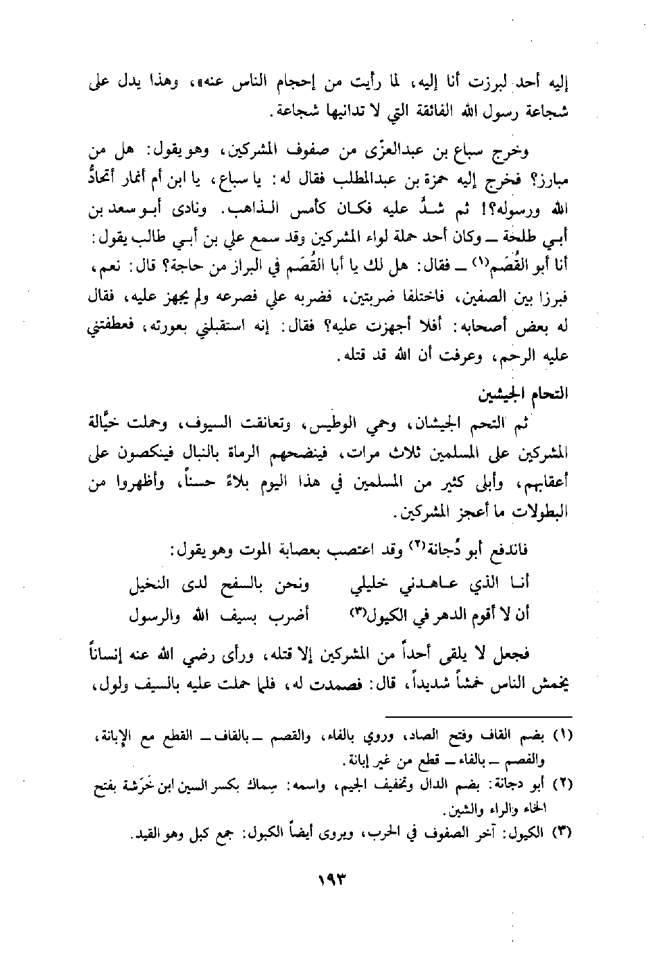 (2) أبو دجانة: بضم الدال وتخفيف الجيم، واسمه: سماك بكسر السين ابن خرشة بفتح الخاء والراء والشين.