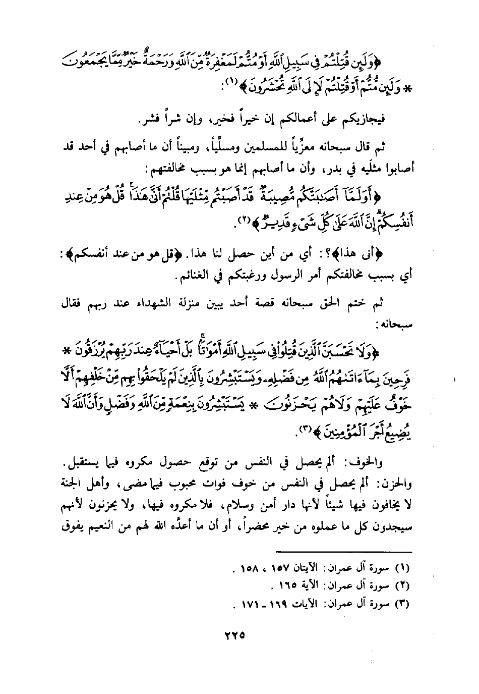 وَلَئِنْ قُتِلْتُمْ فِي سَبِيلِ اللَّهِ أَوْ مُتُّمْ لَمَغْفِرَةٌ مِنَ اللَّهِ وَرَحْمَةٌ خَيْرٌ مِمَّا يَجْمَعُونَ. وَلَئِنْ مُتُّمْ أَوْ قُتِلْتُمْ لَإِلَى اللَّهِ تُحْشَرُونَ «1» :