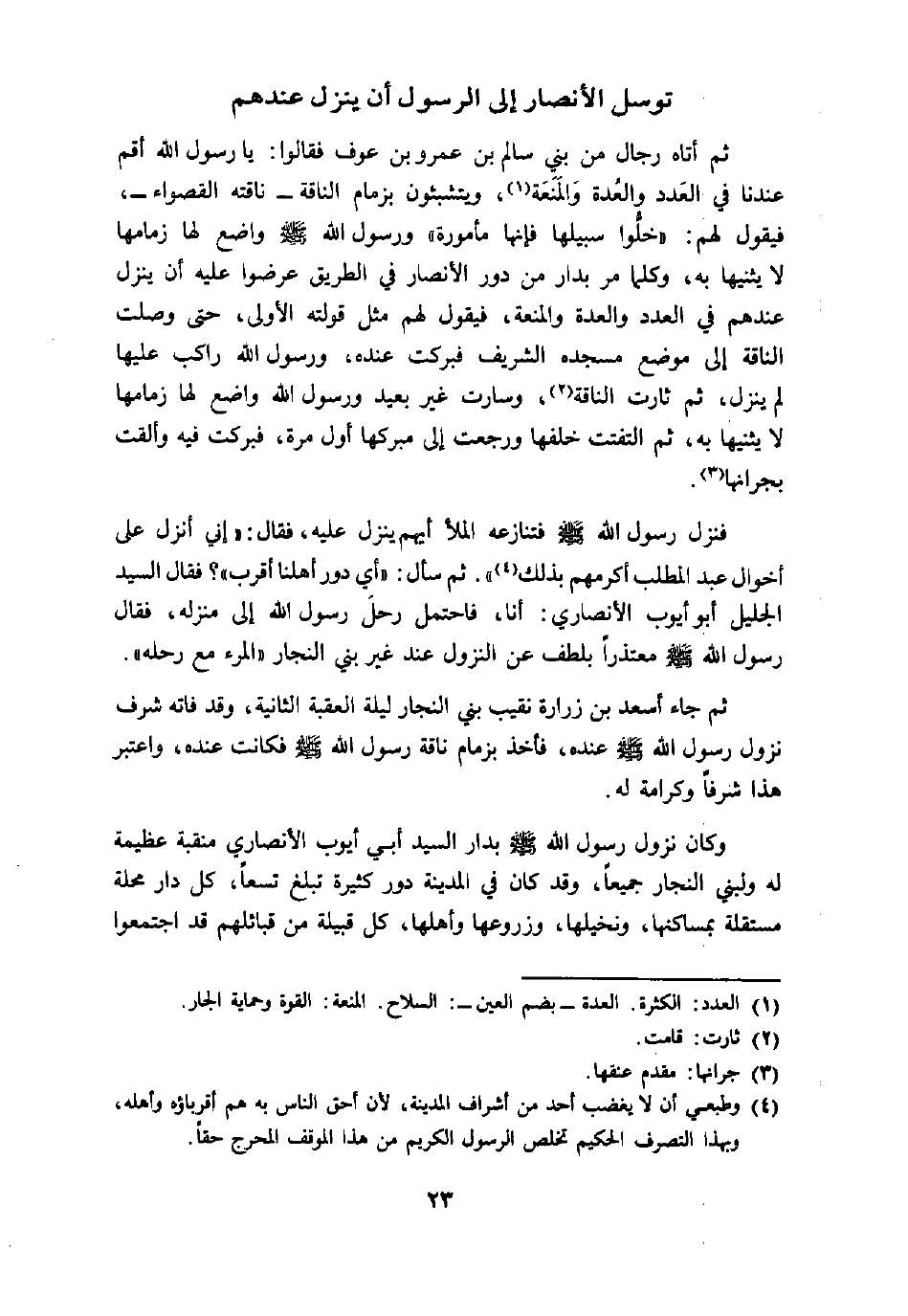 (4) وطبعي ألايغضب أحد من أشراف المدينة، لأن أحق الناس به هم أقرباؤه وأهله، وبهذا التصرف الحكيم تخلص الرسول الكريم من هذا الموقف المحرج حقا.