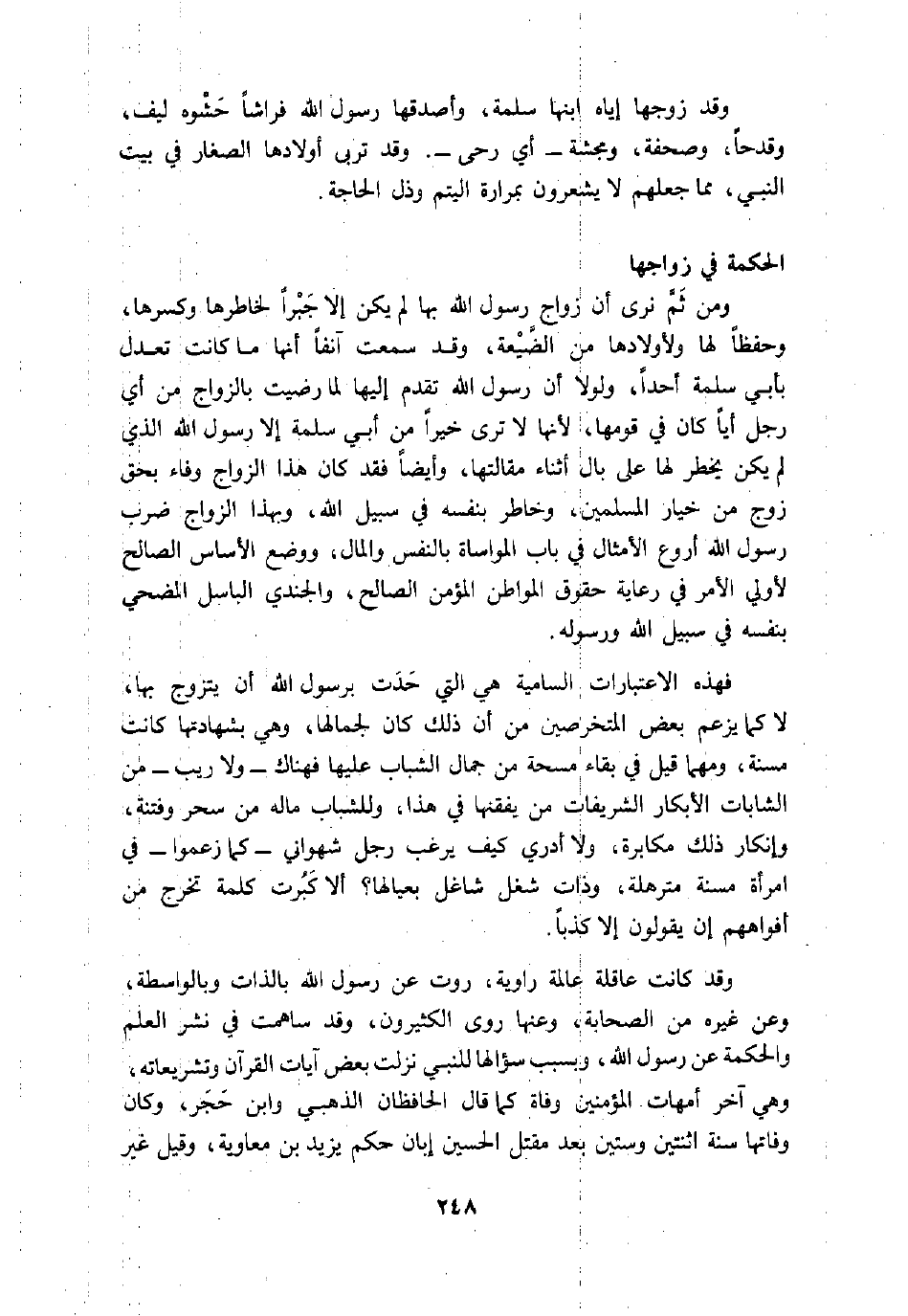 فهذه الاعتبارات السامية هي التي حدت برسول الله أن يتزوج بها، لا كما يزعم بعض المتخرصين من أن ذلك كان لجمالها، وهي بشهادتها كانت مسنة، ومهما قيل في بقاء مسحة من جمال الشباب عليها فهناك- ولا ريب- من الشابات الأبكار الشريفات من يفقنها في هذا، وللشباب ماله من سحر وفتنة، وإنكار ذلك مكابرة، ولا أدري كيف يرغب رجل شهواني- كما زعموا- في امرأة مسنة مترهلة، وذات شغل شاغل بعيالها؟ ألا كبرت كلمة تخرج من أفواههم إن يقولون إلا كذبا.