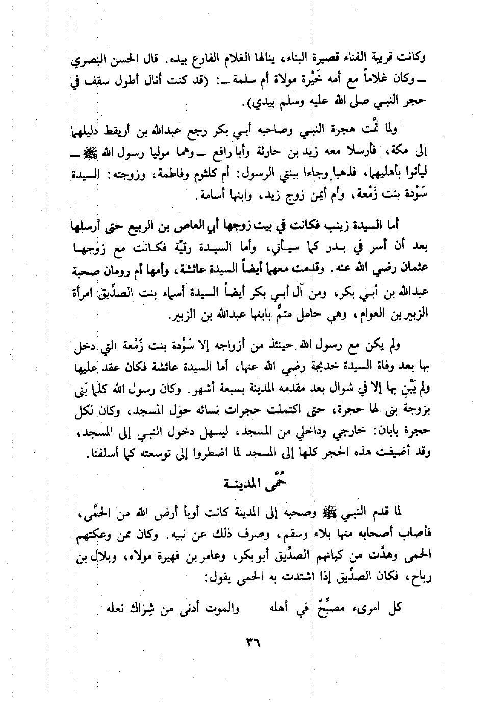 لما قدم النبي صلى الله عليه وسلم وصحبه إلى المدينة كانت أوبأ أرض الله من الحمّى، فأصاب أصحابه منها بلاء وسقم، وصرف ذلك عن نبيه. وكان ممن وعكتهم الحمى وهدّت من كيانهم الصدّيق أبو بكر، وعامر بن فهيرة مولاه، وبلال بن رباح، فكان الصدّيق إذا اشتدت به الحمى يقول: