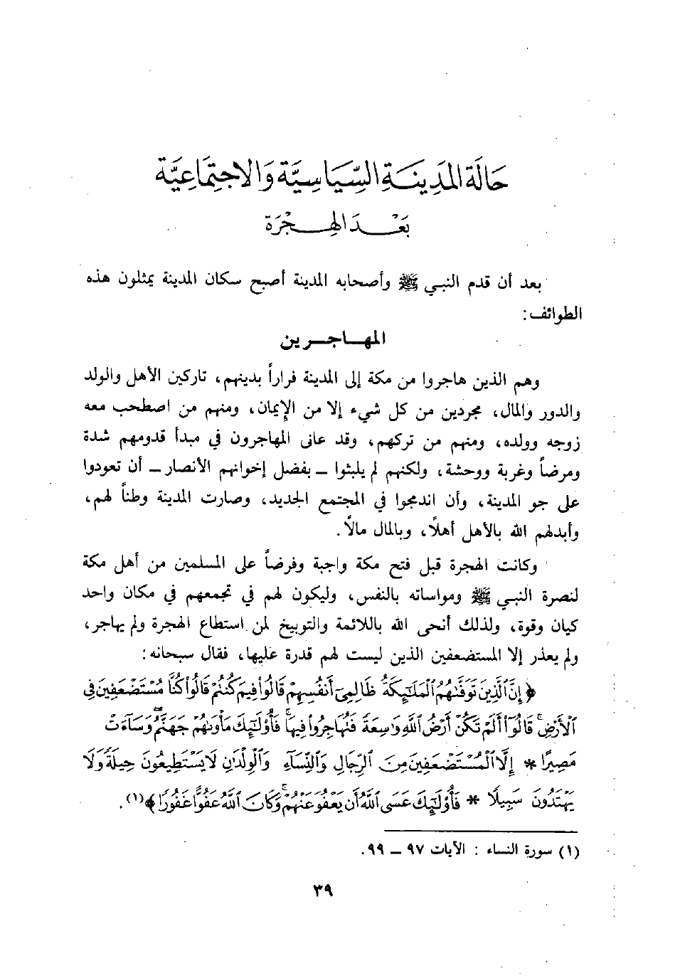 إِنَّ الَّذِينَ تَوَفَّاهُمُ الْمَلائِكَةُ ظالِمِي أَنْفُسِهِمْ قالُوا فِيمَ كُنْتُمْ قالُوا كُنَّا مُسْتَضْعَفِينَ فِي الْأَرْضِ قالُوا أَلَمْ تَكُنْ أَرْضُ اللَّهِ واسِعَةً فَتُهاجِرُوا فِيها فَأُولئِكَ مَأْواهُمْ جَهَنَّمُ وَساءَتْ مَصِيراً. إِلَّا الْمُسْتَضْعَفِينَ مِنَ الرِّجالِ وَالنِّساءِ وَالْوِلْدانِ لا يَسْتَطِيعُونَ حِيلَةً وَلا يَهْتَدُونَ سَبِيلًا. فَأُولئِكَ عَسَى اللَّهُ أَنْ يَعْفُوَ عَنْهُمْ وَكانَ اللَّهُ عَفُوًّا غَفُوراً «1» .