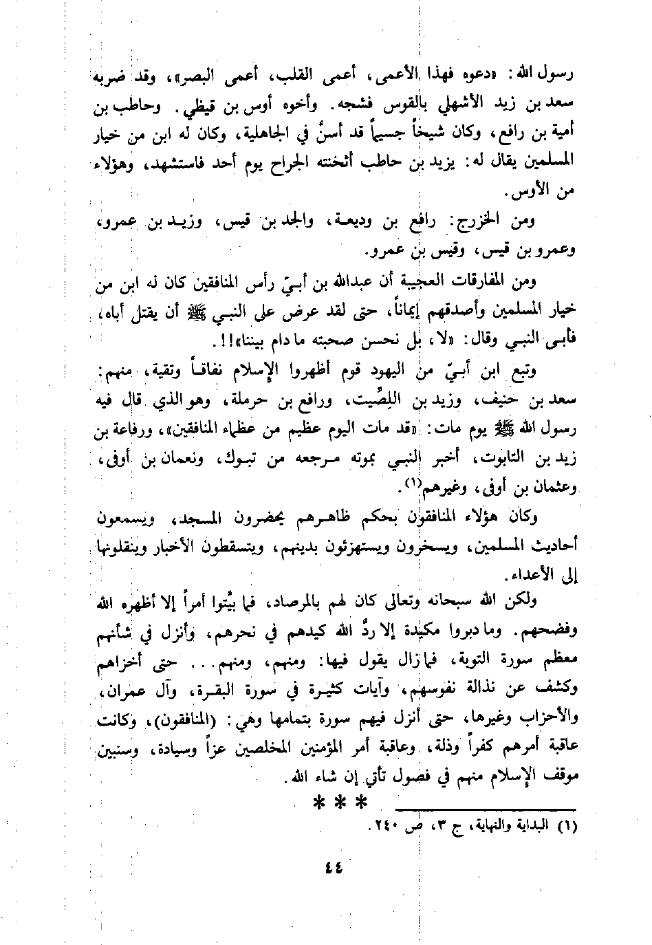 رسول الله: «دعوه فهذا الأعمى، أعمى القلب، أعمى البصر» ، وقد ضربه سعد بن زيد الأشهلي بالقوس فشجه. وأخوه أوس بن قيظي. وحاطب بن أمية بن رافع، وكان شيخا جسيما قد أسنّ في الجاهلية، وكان له ابن من خيار المسلمين يقال له: يزيد بن حاطب أثخنته الجراح يوم أحد فاستشهد، وهؤلاء من الأوس.