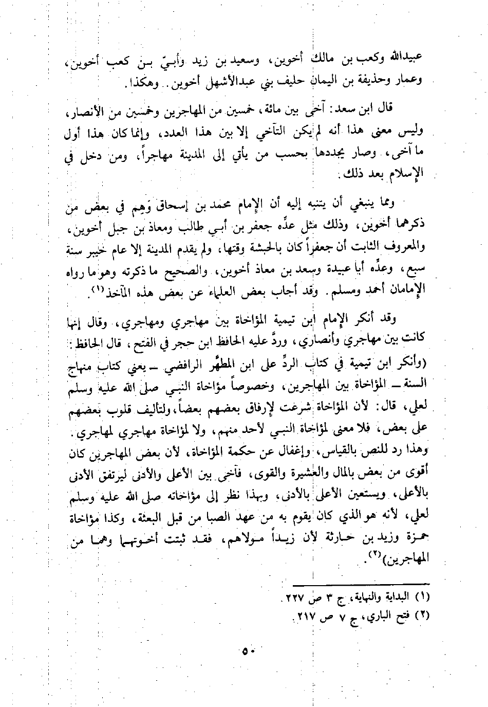 وهذا رد للنص بالقياس، وإغفال عن حكمة المؤاخاة، لأن بعض المهاجرين كان أقوى من بعض بالمال والعشيرة والقوى، فاخى بين الأعلى والأدنى ليرتفق الأدنى بالأعلى، ويستعين الأعلى بالأدنى، وبهذا نظر إلى مؤاخاته صلى الله عليه وسلم لعلي، لأنه هو الذي كان يقوم به من عهد الصبا من قبل البعثة، وكذا مؤاخاة حمزة وزيد بن حارثة لأن زيدا مولاهم، فقد ثبتت أخواتهما وهما من المهاجرين) «2» .