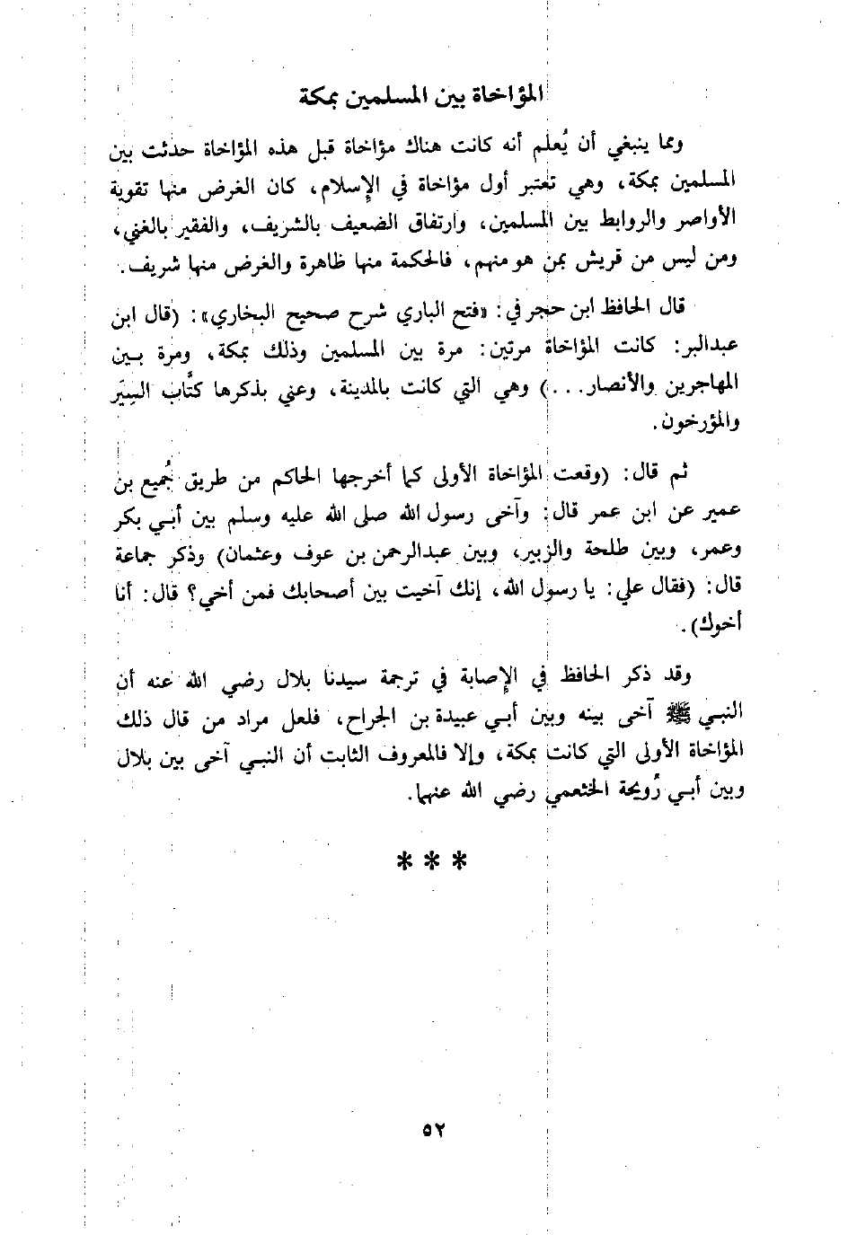 قال الحافظ ابن حجر في: «فتح الباري شرح صحيح البخاري» : (قال ابن عبد البر: كانت المؤاخاة مرتين: مرة بين المسلمين وذلك بمكة، ومرة بين المهاجرين والأنصار ... ) وهي التي كانت بالمدينة، وعني بذكرها كتّاب السير والمؤرخون.
