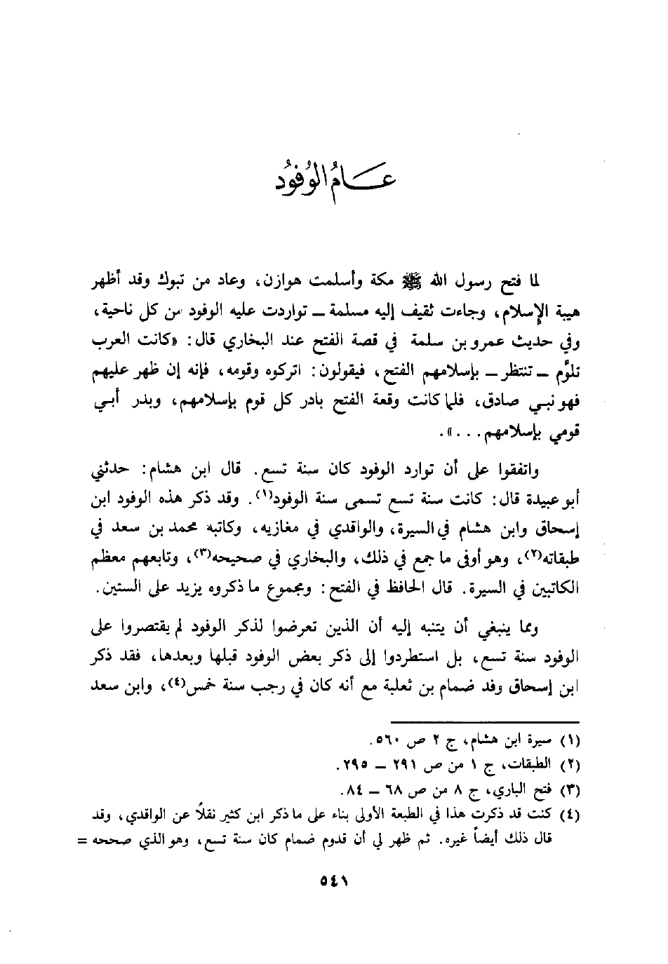 واتفقوا على أن توارد الوفود كان سنة تسع. قال ابن هشام: حدثني أبو عبيدة قال: كانت سنة تسع تسمى سنة الوفود «1» . وقد ذكر هذه الوفود ابن إسحاق وابن هشام في السيرة، والواقدي في مغازيه، وكاتبه محمد بن سعد في طبقاته «2» ، وهو أوفى ما جمع في ذلك، والبخاري في صحيحه «3» ، وتابعهم معظم الكاتبين في السيرة. قال الحافظ في الفتح: ومجموع ما ذكروه يزيد على الستين.