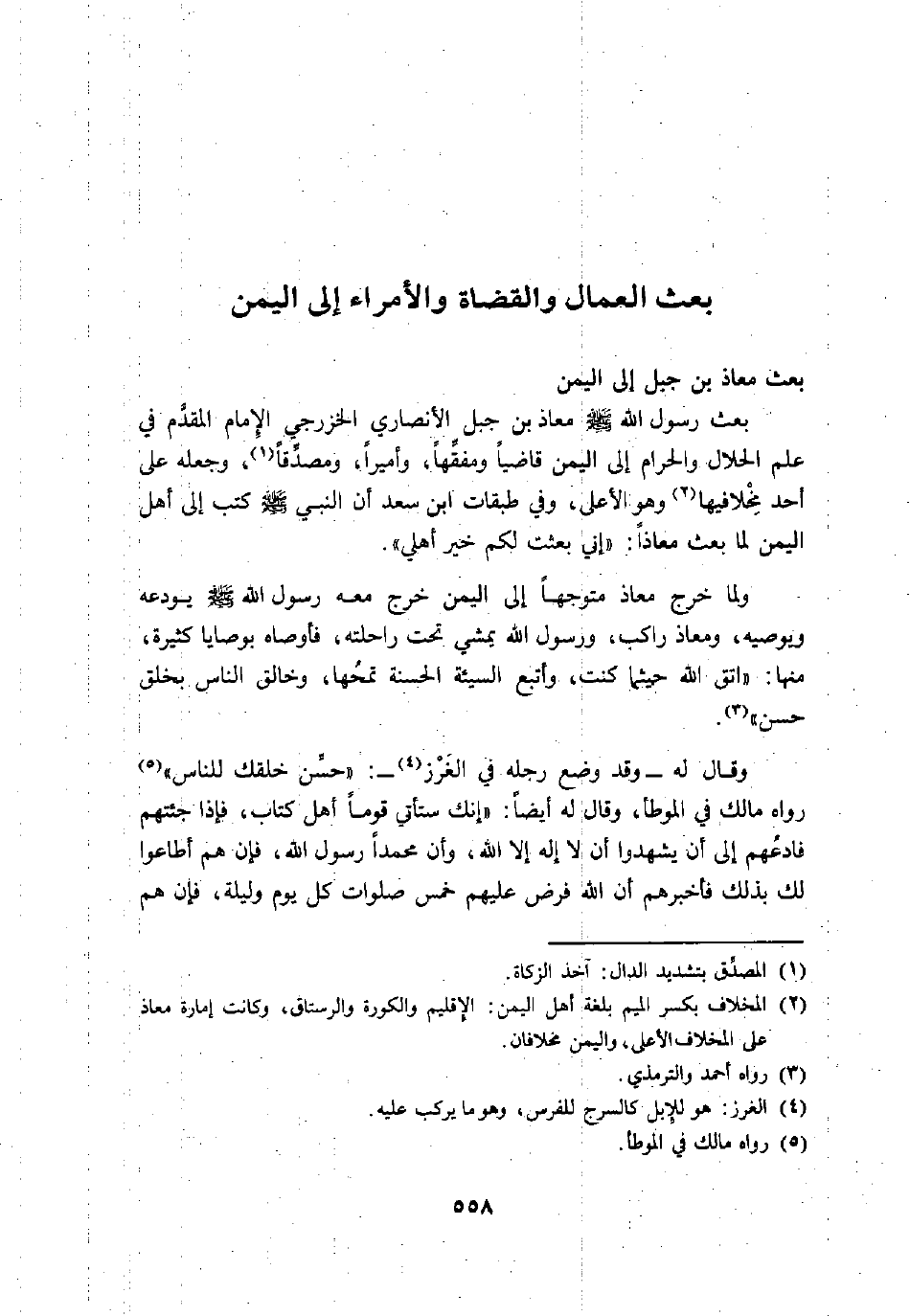 بعث رسول الله صلى الله عليه وسلم معاذ بن جبل الأنصاري الخزرجي الإمام المقدّم في علم الحلال والحرام إلى اليمن قاضيا ومفقّها، وأميرا، ومصدّقا «1» ، وجعله على أحد مخلافيها «2» وهو الأعلى، وفي طبقات ابن سعد أن النبي صلى الله عليه وسلم كتب إلى أهل اليمن لما بعث معاذا: «إني بعثت لكم خير أهلي» .