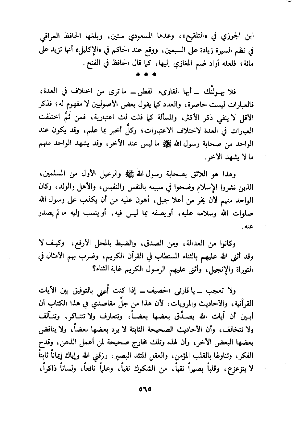 فلا يهولنّك- أيها القارىء الفطن- ما ترى من اختلاف في العدة، فالعبارات ليست حاصرة، والعدد كما يقول بعض الأصوليين لا مفهوم له؛ فذكر الأقل لا ينفي ذكر الأكثر، والمسألة كما قلت لك اعتبارية، فمن ثمّ اختلفت العبارات في العدة لاختلاف الاعتبارات؛ وكلّ أخبر بما علم، وقد يكون عند الواحد من صحابة رسول الله صلى الله عليه وسلم ما ليس عند الاخر، وقد يشهد الواحد منهم ما لا يشهد الاخر.