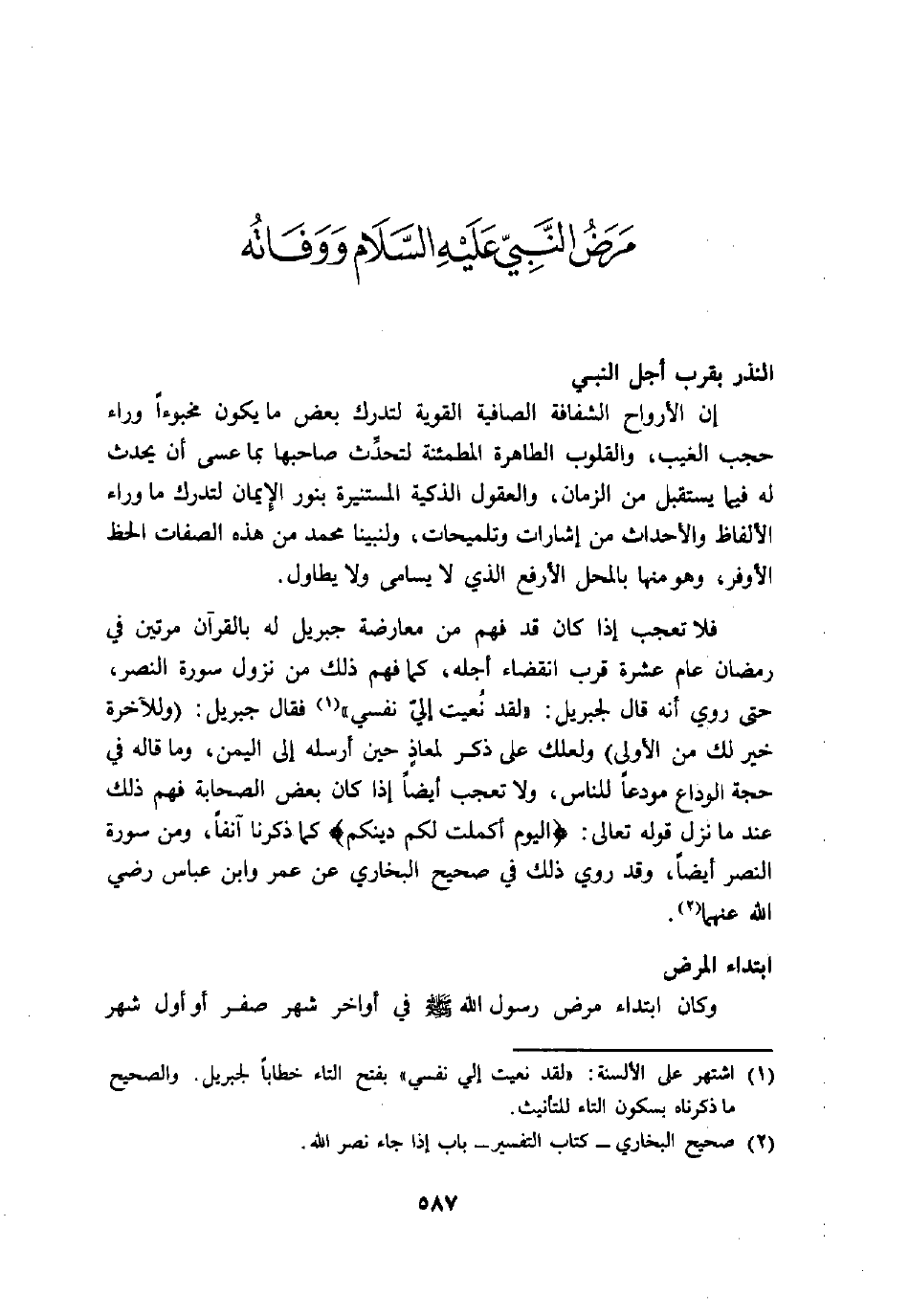 (1) اشتهر على الألسنة: «لقد نعيت إلي نفسي» بفتح التاء خطابا لجبريل. والصحيح ما ذكرناه بسكون التاء للتأنيث.