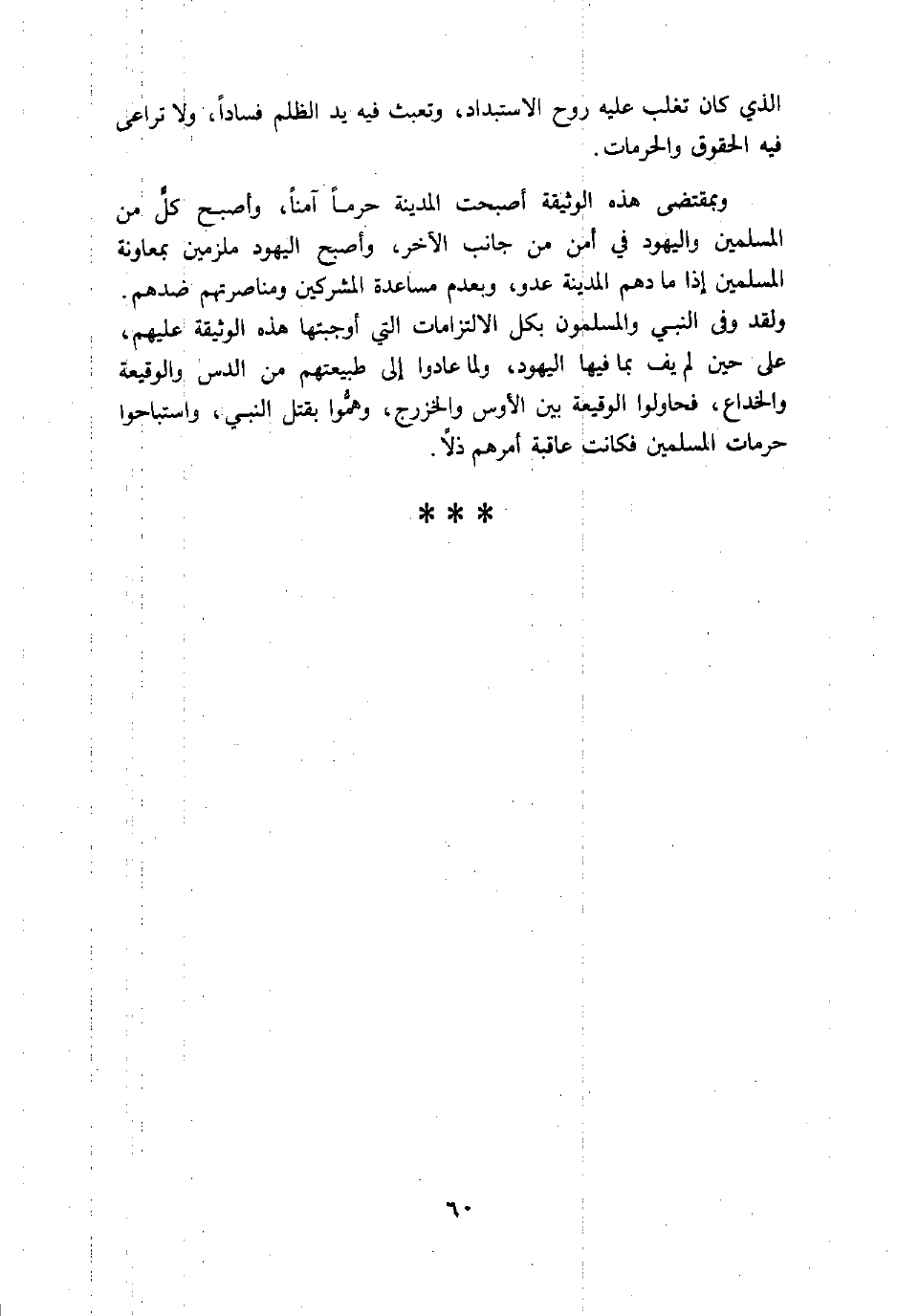 وبمقتضى هذه الوثيقة أصبحت المدينة حرما امنا، وأصبح كلّ من المسلمين واليهود في أمن من جانب الاخر، وأصبح اليهود ملزمين بمعاونة المسلمين إذا ما دهم المدينة عدو، وبعدم مساعدة المشركين ومناصرتهم ضدهم.