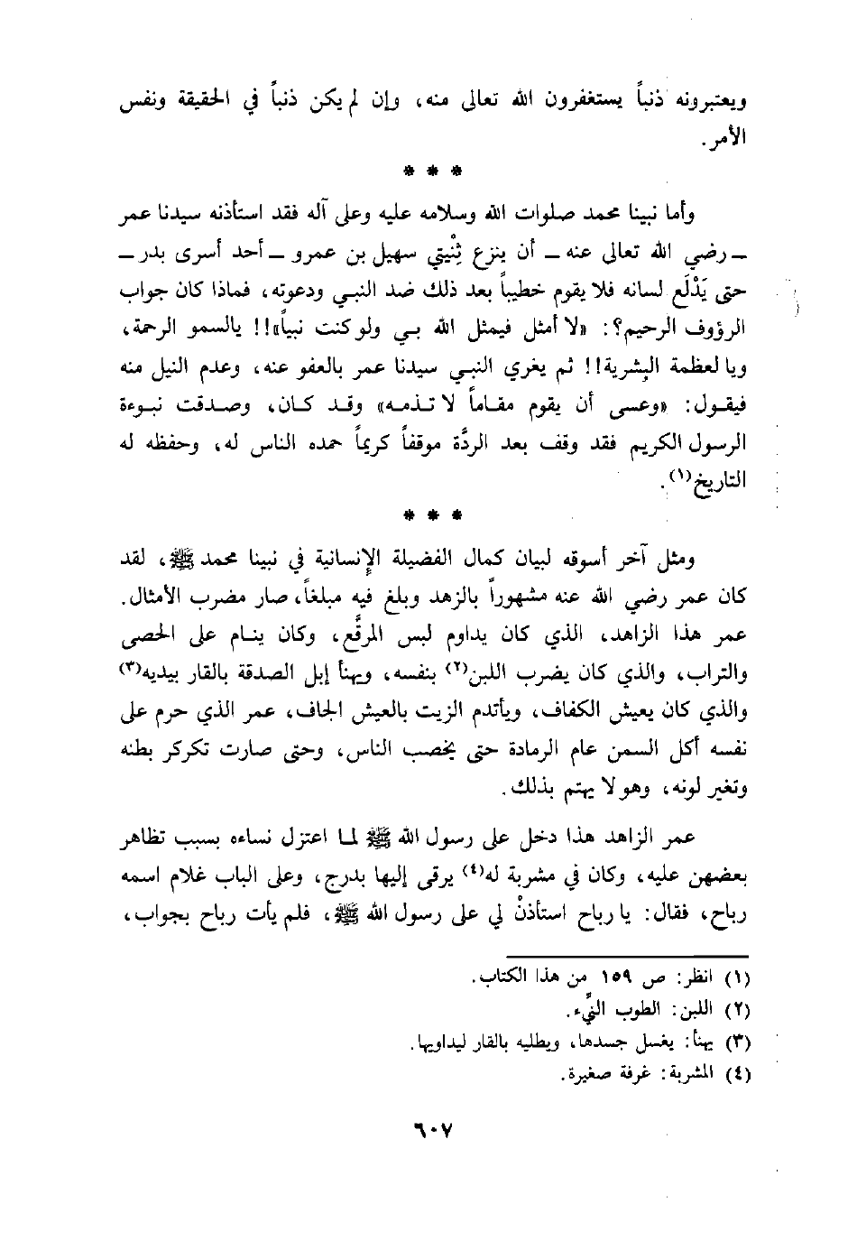 ومثل اخر أسوقه لبيان كمال الفضيلة الإنسانية في نبينا محمد صلى الله عليه وسلم، لقد كان عمر رضي الله عنه مشهورا بالزهد وبلغ فيه مبلغا، صار مضرب الأمثال.