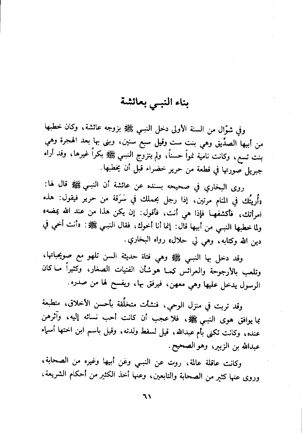 روى البخاري في صحيحه بسنده عن عائشة أن النبي صلى الله عليه وسلم قال لها:
